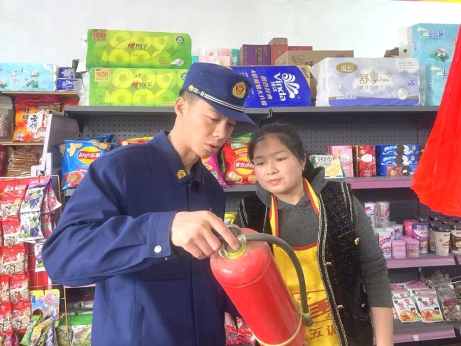 万利向商户详细讲解灭火器的使用方法