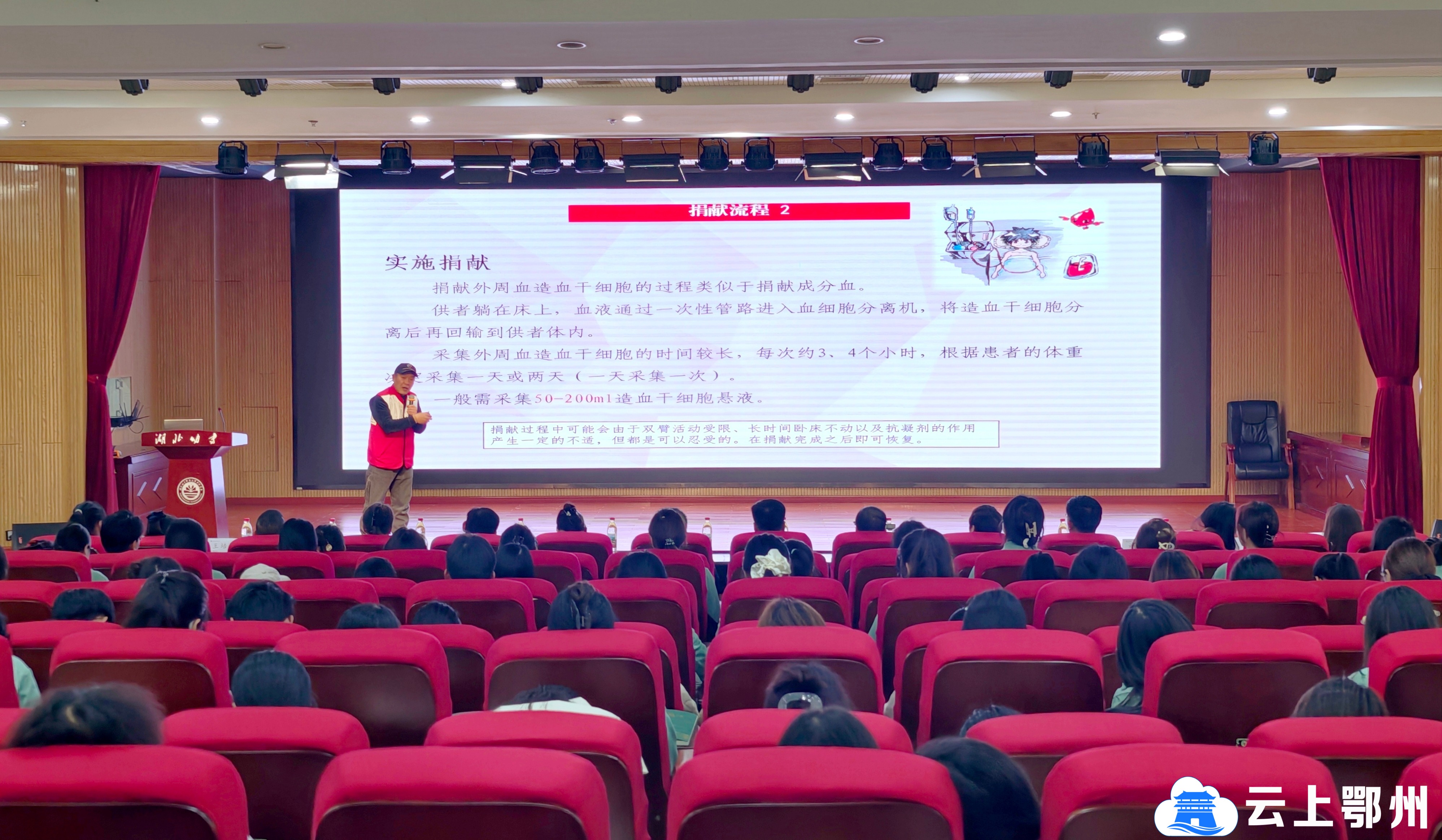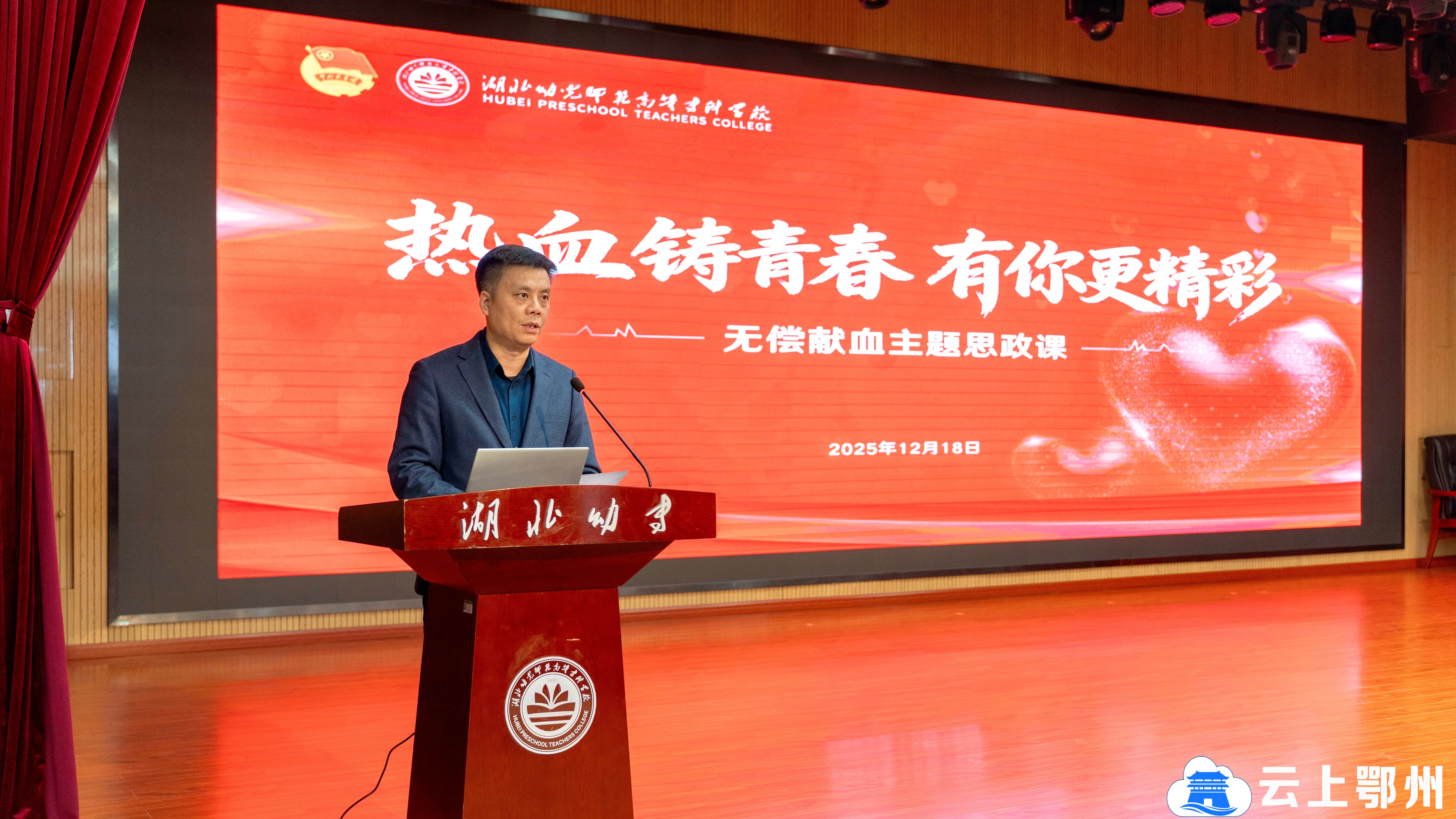 12月18日下午,湖北幼儿师范高等专科学校武汉新城校区学术报告厅内暖流涌动,由鄂州市卫健委、团市委、市红十字会、市中心血站联合该校共同举办的“热血铸青春,有你更精彩”无偿献血主题思政课正式开讲。活动以理论宣讲与实践引导相结合的方式,将无偿献血知识普及与志愿精神培育深度融合,为该校各学院学生代表及第五期青马班全体成员带来了一堂兼具温度与深度的思政实践课。