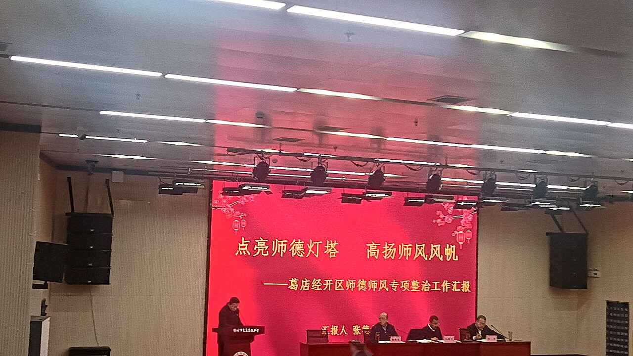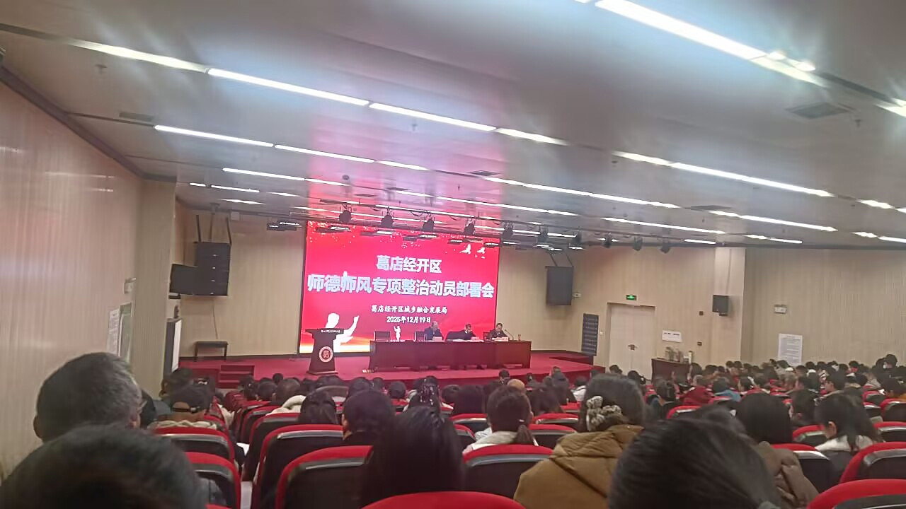 12月19日,葛店经开区师德师风专项整治动员部署会召开,中心学校全体成员,葛店高中、各中小学领导班子成员及班主任,各公办幼儿园园长参会。