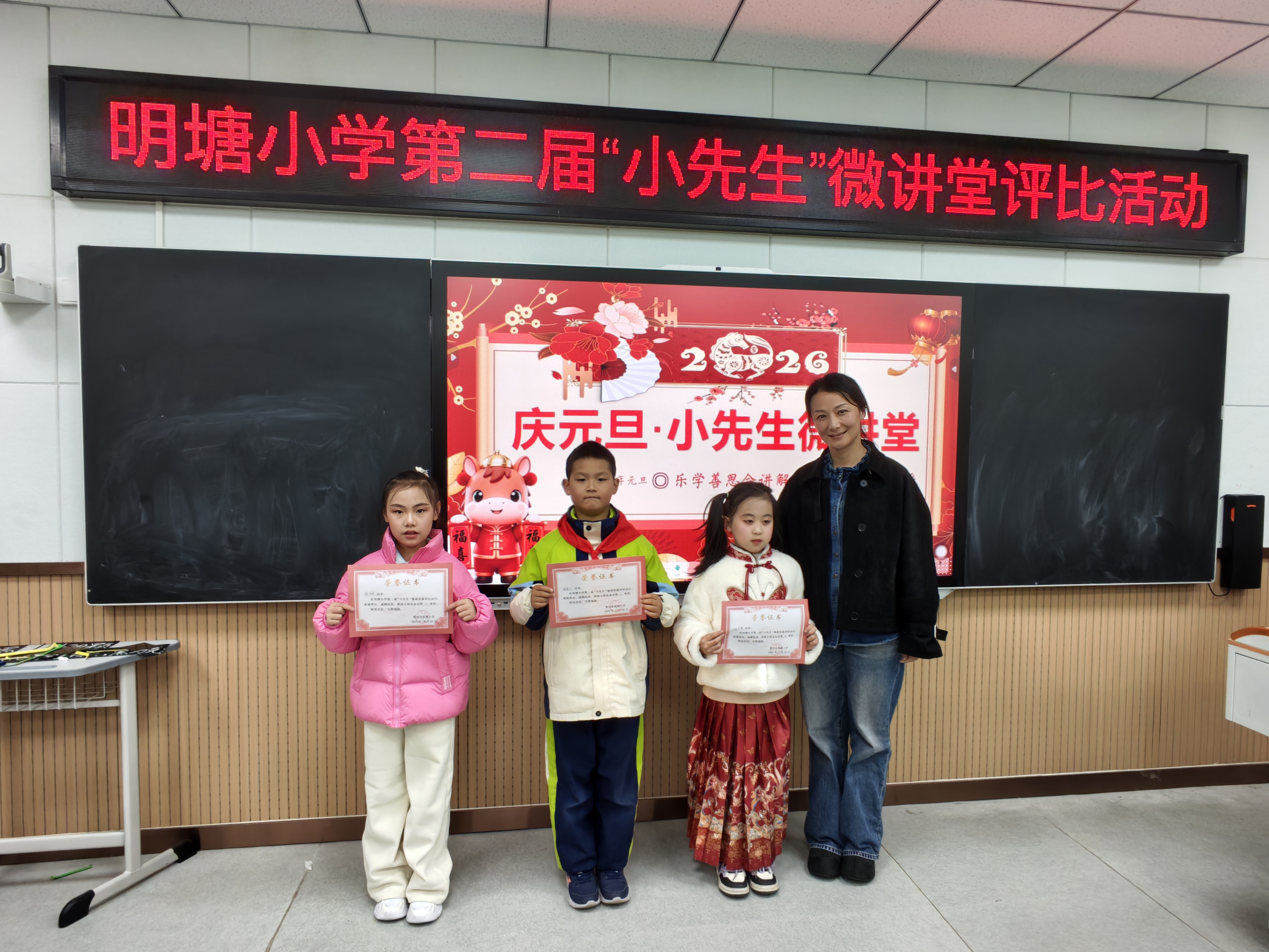 为深入践行陶行知“小先生制”育人思想,搭建生生互动共进平台,锤炼学生综合素养,12月23日至26日,市明塘小学第二届“小先生”微讲堂线上线下评比活动圆满落幕。近200名学子化身“小先生”同台竞技,在实践中完成从“学会”到“会教”的成长蜕变,尽显荷润少年的乐学风采与担当。