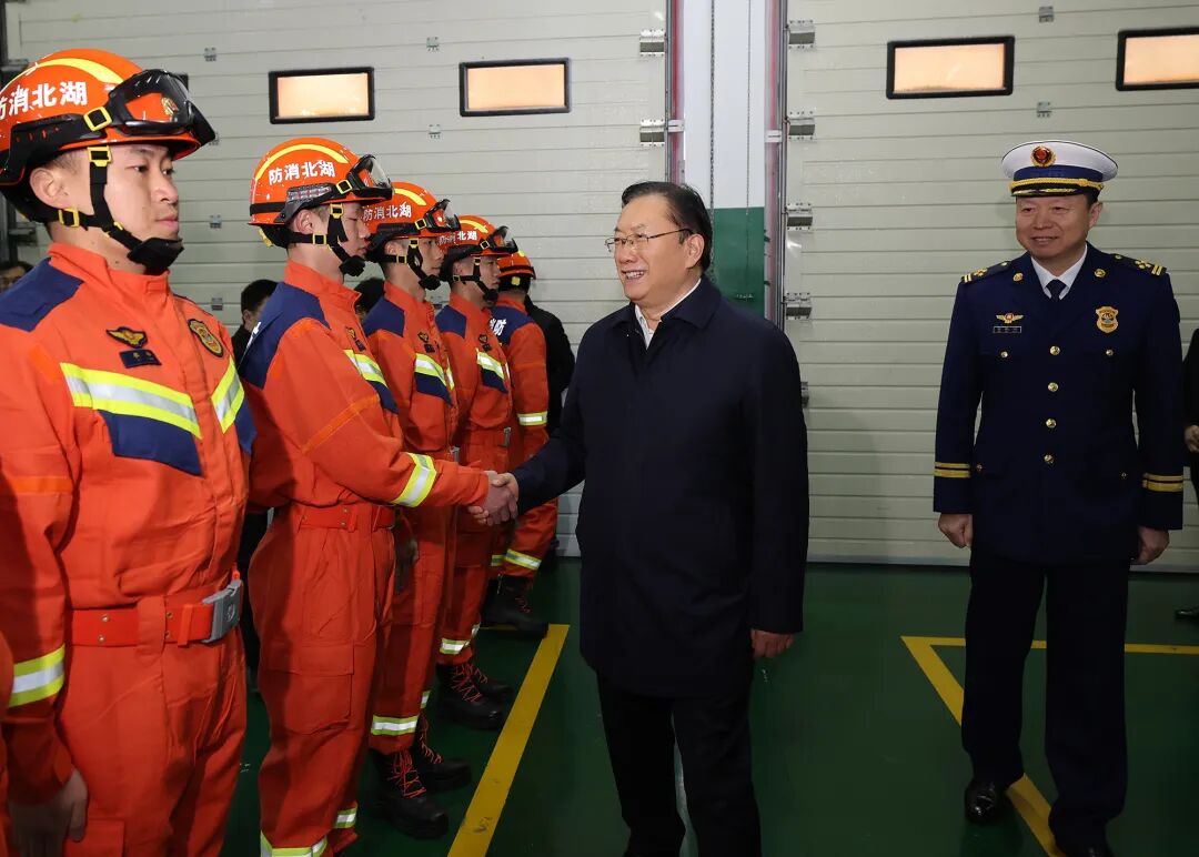 王忠林来到武昌区积玉桥消防救援站,看望慰问消防救援人员,对大家长期奋战在消防救援一线、守护社会安宁表示衷心感谢。王忠林察看消防车、载重灭火无人机等设施装备,听取全省警情火灾概况、消防重点工作等情况汇报。他强调,冬季是用火用电用气高峰期,火灾事故易发多发,消防备勤任务繁重、责任重大。要发扬优良作风、保持战备状态,强化责任意识、监督检查、能力提升、值班值守,紧盯重点部位、重点领域,落实落细各项消防安全措施,加强应急响应和高效救援,坚决遏制重特大事故发生,守护人民群众平安过节。
