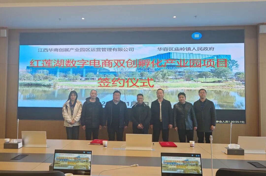 1月6日下午,红莲湖数字电商双创孵化产业园项目在武汉新城展示中心正式签约。