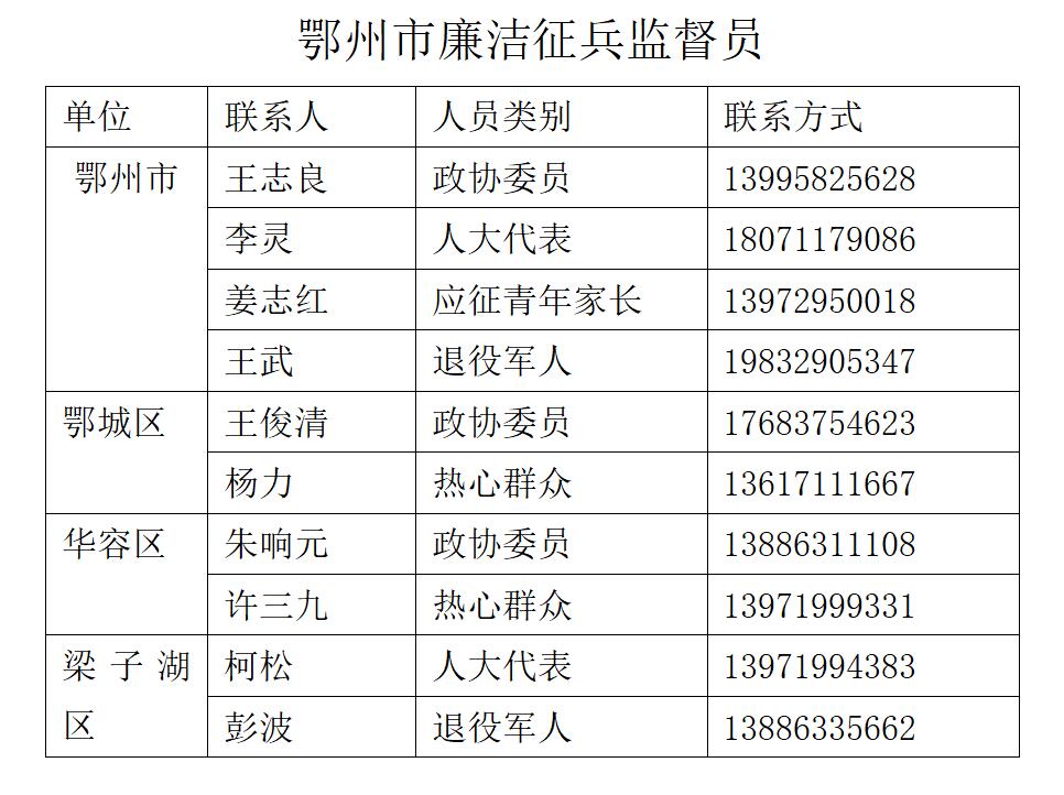 梁子湖区征兵办:0711-5059560