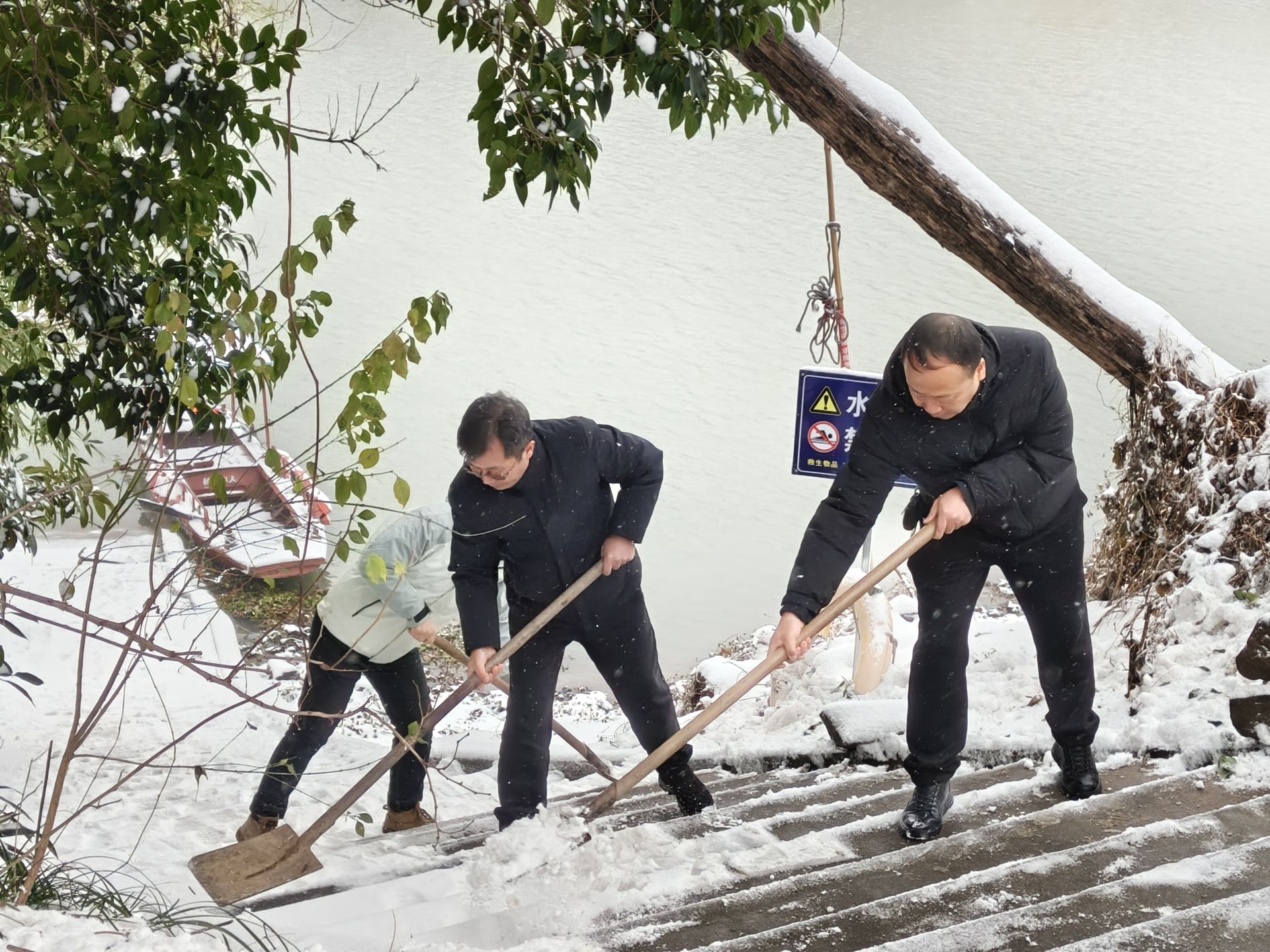 交警、自来水、应急、执法、城建、经服办等职能部门提前备足食盐、铁锹、草垫等应急物资,对企业、在建项目、渡口码头、自建房、大棚等重点场所开展预警提示和应急防范。1月19日,街道专门召开工作部署会,细化除雪流程、明确责任清单,确保各项应对措施科学有序落地,为后续除雪保畅工作打下坚实基础。