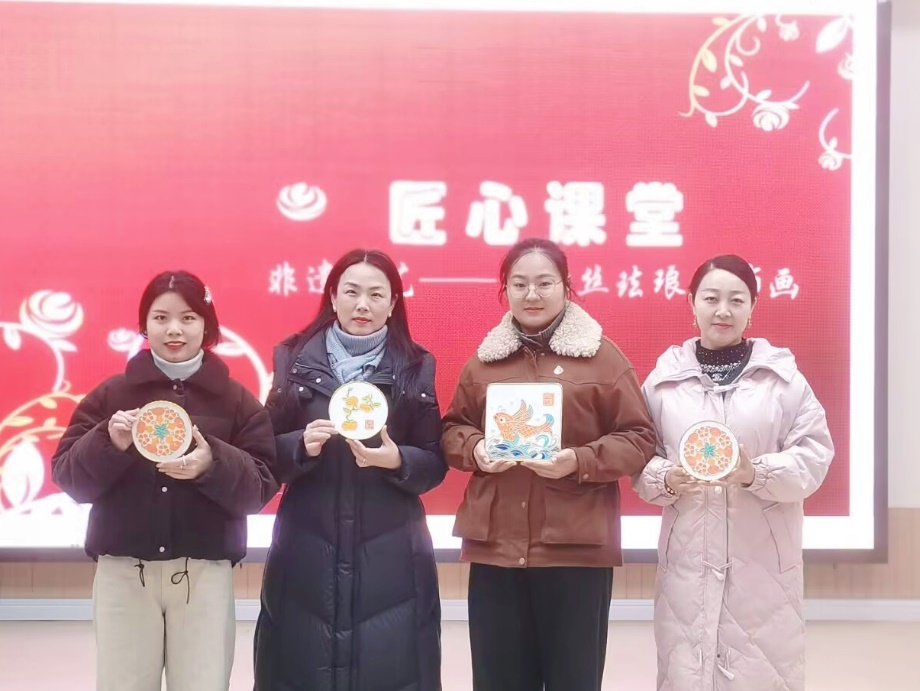 活动在浓郁的传统年味中拉开序幕。党员教师分为三组,分别体验剪纸、掐丝珐琅与金箔画三项非遗技艺。剪纸组围绕“马年祈福”“廉洁从教”等主题,创作出寓意吉祥的剪纸台灯;掐丝珐琅组细致勾勒、填彩,在方寸之间诠释匠心;金箔画组则以“事事如意”“马上有福”为主题,体验贴金工艺的精湛与厚重。党员们在动手实践中交流技艺、感悟匠心,深刻领会中华优秀传统文化的魅力。
