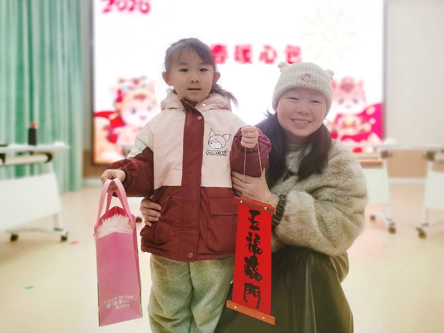 本次活动特别设置“暖冬工坊”环节,党员教师与结对留守儿童共同运用拓印技艺创作春联和“福”字。红纸墨香间,笑语阵阵,党群情谊在协作中自然流淌。活动最后,支部为孩子们送上装有手套、围巾的“新春暖心包”,将党组织的温暖与关怀切实传递到留守儿童手中,营造出温馨有爱的节日氛围。