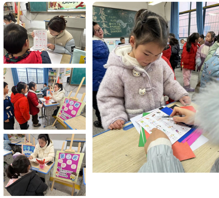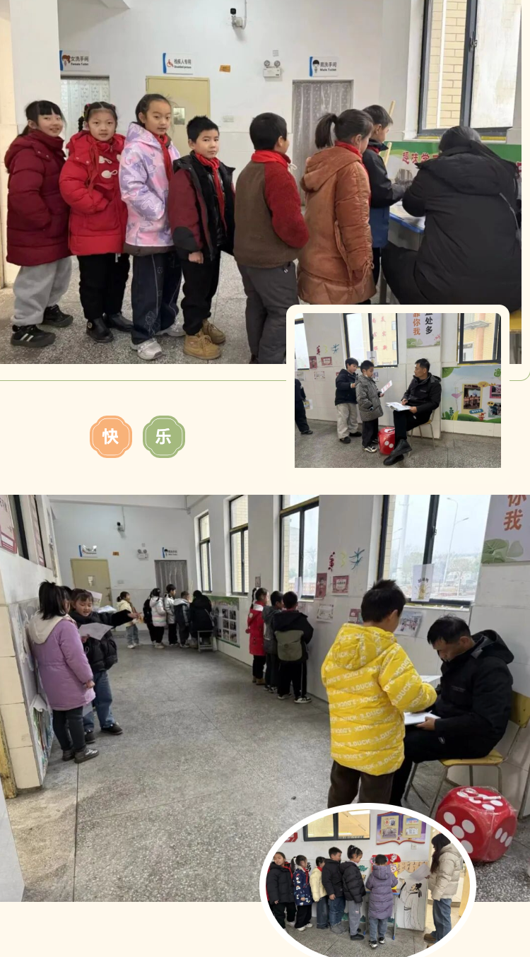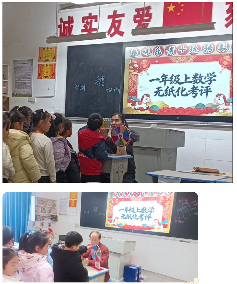 二年级的测试现场也是热闹非凡。语文测试中,“抽红包读字词”将幸运与知识考查相结合,孩子们兴奋地抽取红包,大声读出字词,脸上洋溢着喜悦;“诵读经典”时,他们用稚嫩而坚定的声音传递着经典诗文的魅力,展现出对传统文化的热爱;“看图说话”环节,孩子们充分发挥想象力,用生动的语言描绘画面,展现出良好的语言表达和逻辑思维能力。数学“数学大转盘”前,孩子们转动转盘,随机抽取题目并认真作答,在充满不确定性的挑战中巩固知识,锻炼应变能力。