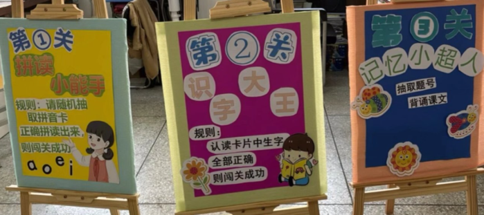 此次无纸笔测试,学校根据一、二年级学生的年龄特点和语文、数学学习要求,分别设置了各具特色的闯关环节。