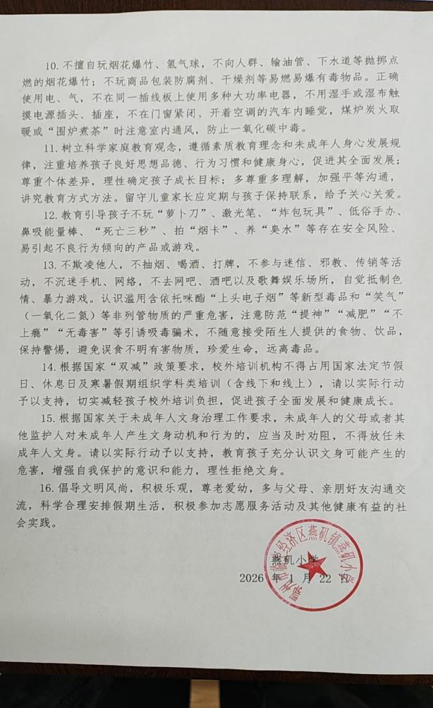 一句句暖心的叮嘱,一次次真诚的交流,拉近了学校与家庭、教师与家长之间的距离,也让教育的温度在寒冬中传递。家长们纷纷表示,感谢学校的用心安排和老师们的辛勤付出,此次家访不仅让他们更全面地了解了孩子的在校情况,也感受到了学校对学生的深切关怀,将积极配合学校做好寒假期间的家庭教育工作,与学校携手为孩子的健康成长保驾护航。(通讯员:袁国齐)
