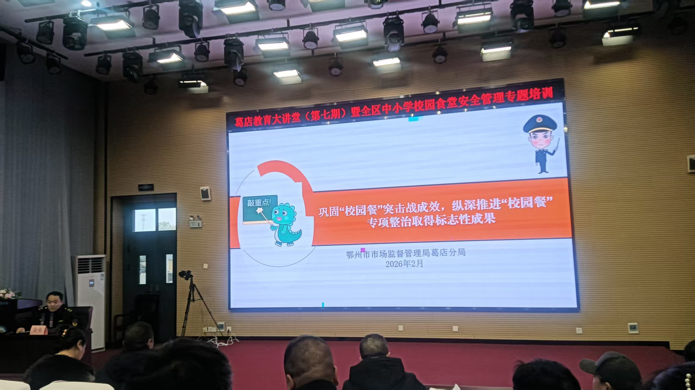2月6日,葛店国家经开区教育大讲堂第七期暨全区中小学校园食品安全管理专题培训活动举行;本次培训,聚焦校园食品安全与政府采购规范,特邀两位在各自领域颇具权威的专家授课。区城乡融合发展局领导、教育工作组专班成员、全区中小学校校长、后勤副校长、总务主任、报账员,公办幼儿园园长、报账员以及各校园食品安全总监、食品安全员,民办幼儿园食品安全总监和食品安全员等参训。