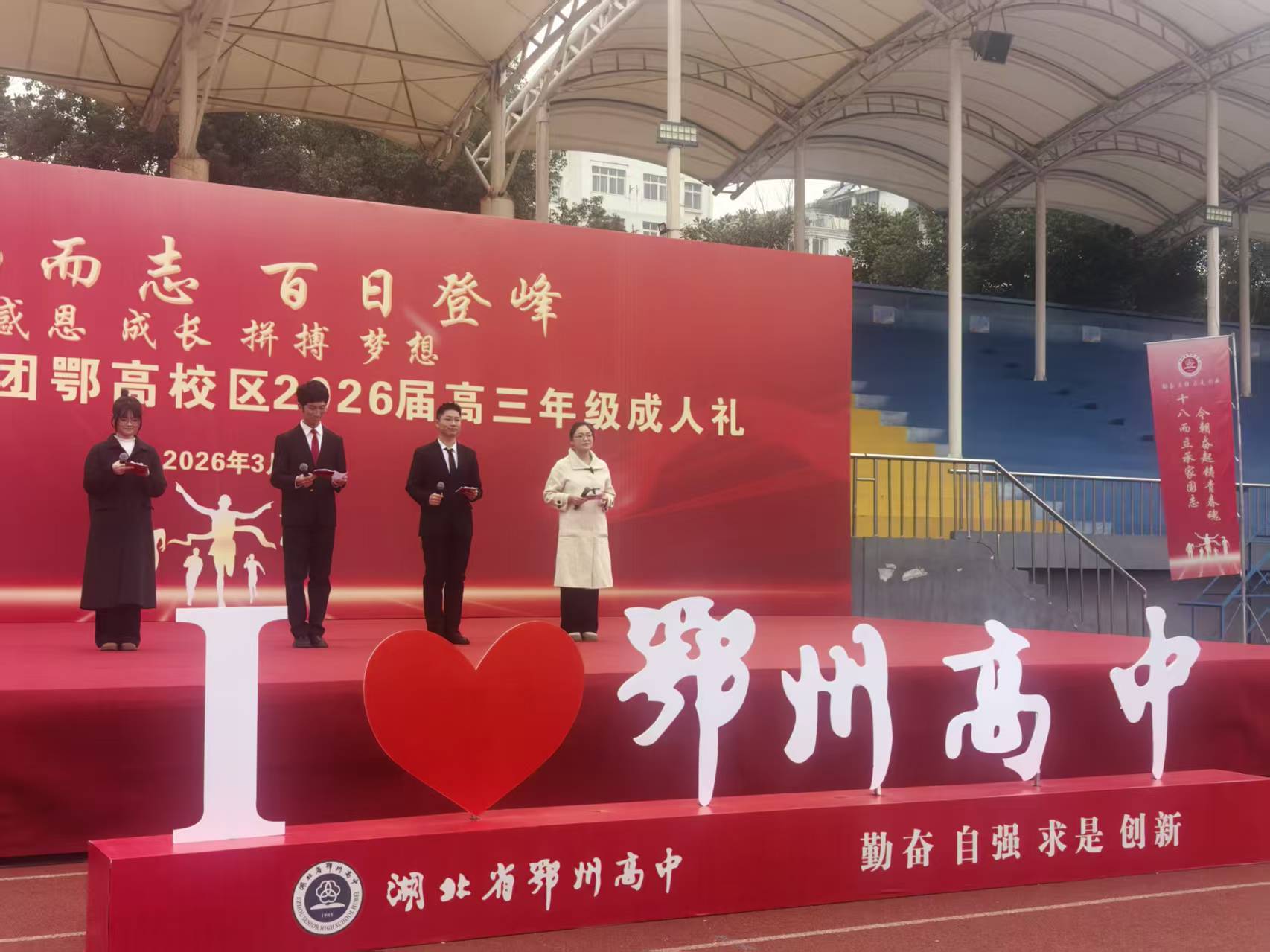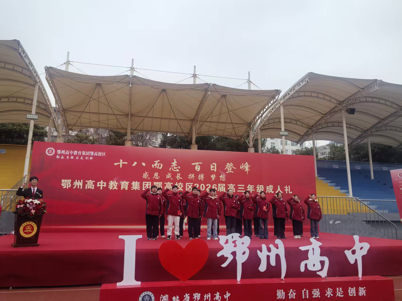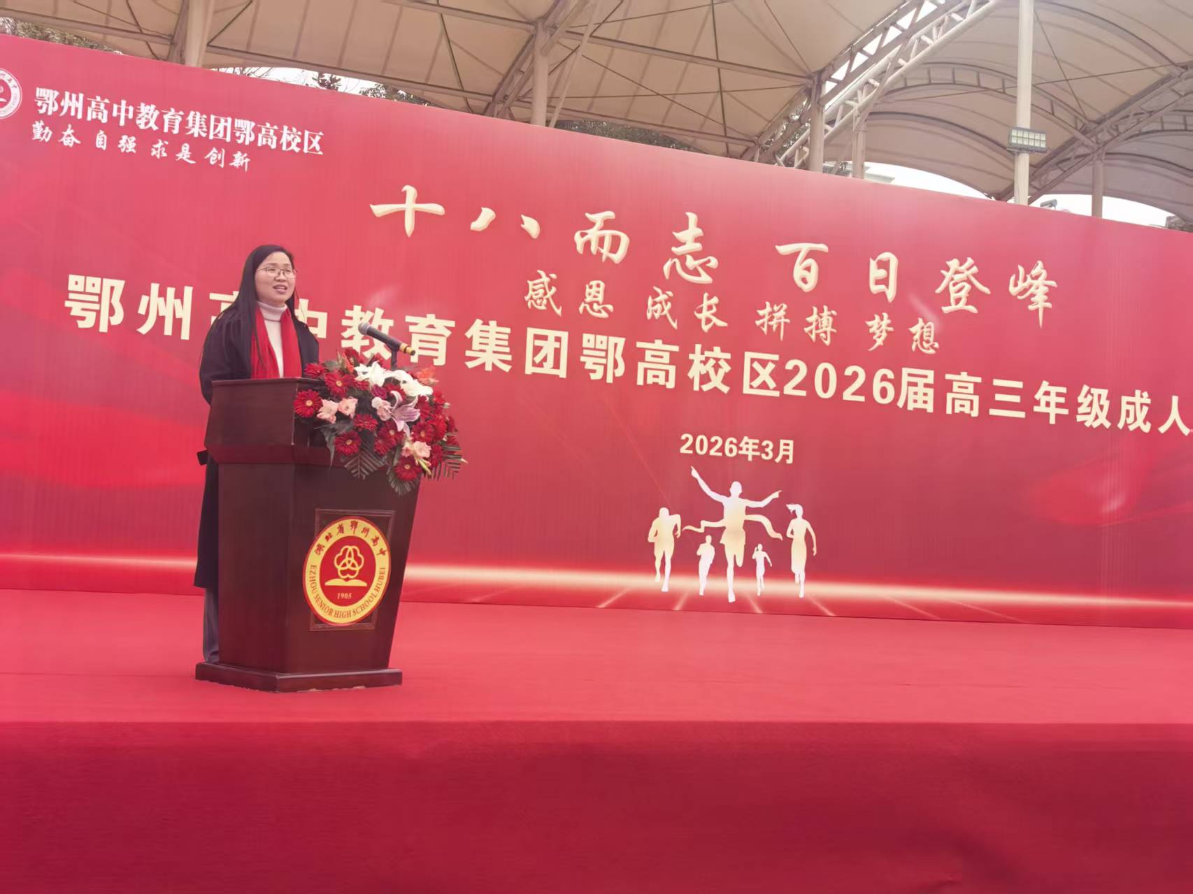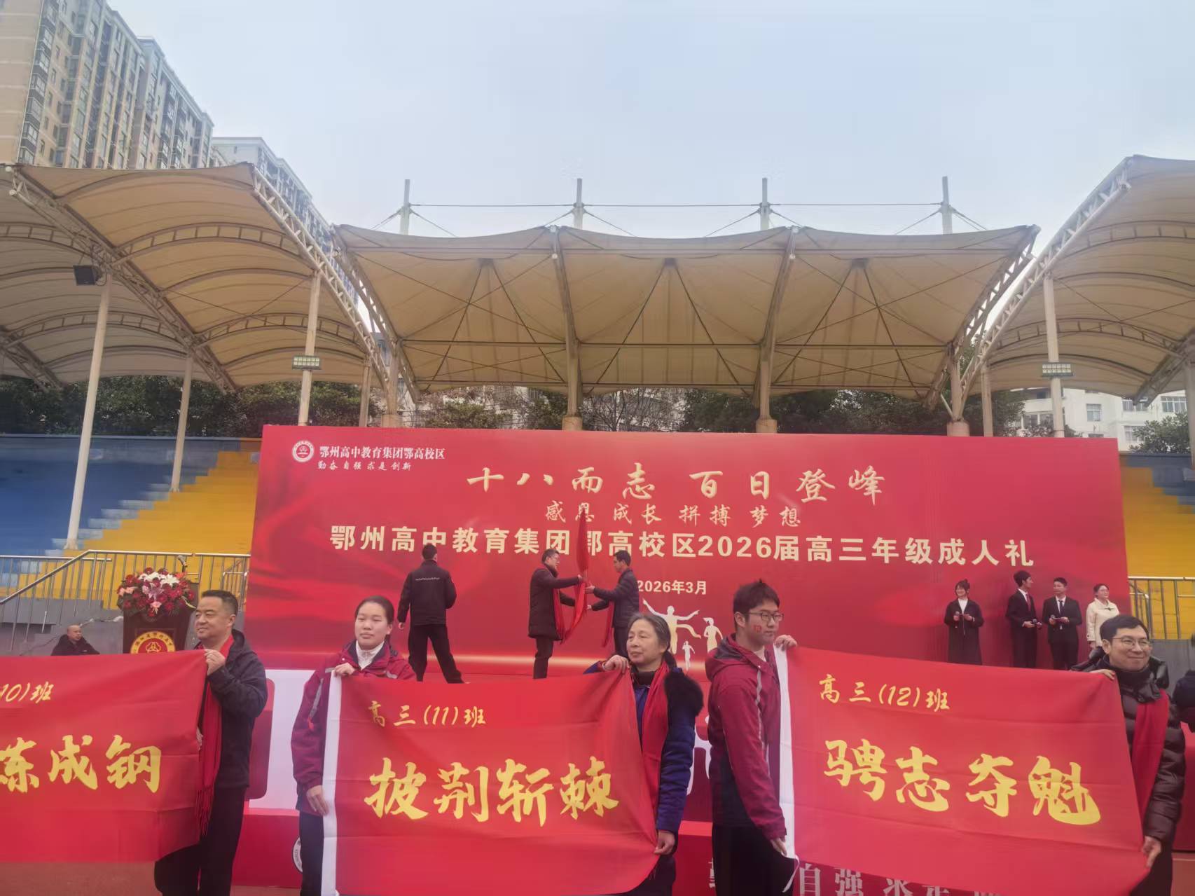 3月3日上午,鄂州高中教育集团鄂高校区田径场上红旗猎猎、誓言铮铮,2026届高三成人礼拉开帷幕。全体行政领导、高三师生及家长齐聚一堂,共同见证这群十八岁少年从“成长”到“成功”的难忘时刻,以“十八而志”的担当,吹响奔赴未来的冲锋号。