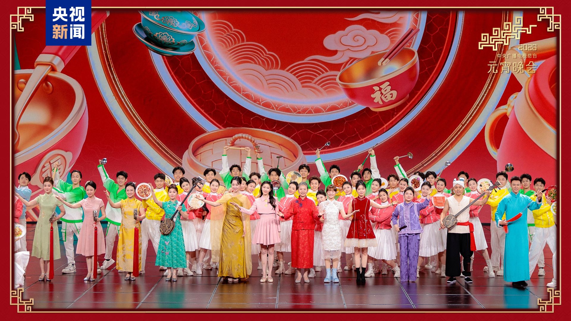 曲韵流转,古风出创编戏歌《春江花好月圆夜》在流行旋律中融入京剧、昆曲、沪剧、川剧等不同剧种声腔,用“何处春江无月明”的经典名句,唱出花好月圆的美满希冀。在曲艺新唱《学做团圆饭》中,北京单弦、陕北说书、上海说唱、河南坠子轮番登场,将油泼面、烤鸭、涮肉、各式汤羹等南北风味写进歌词,传递出烟火气中的团圆滋味。