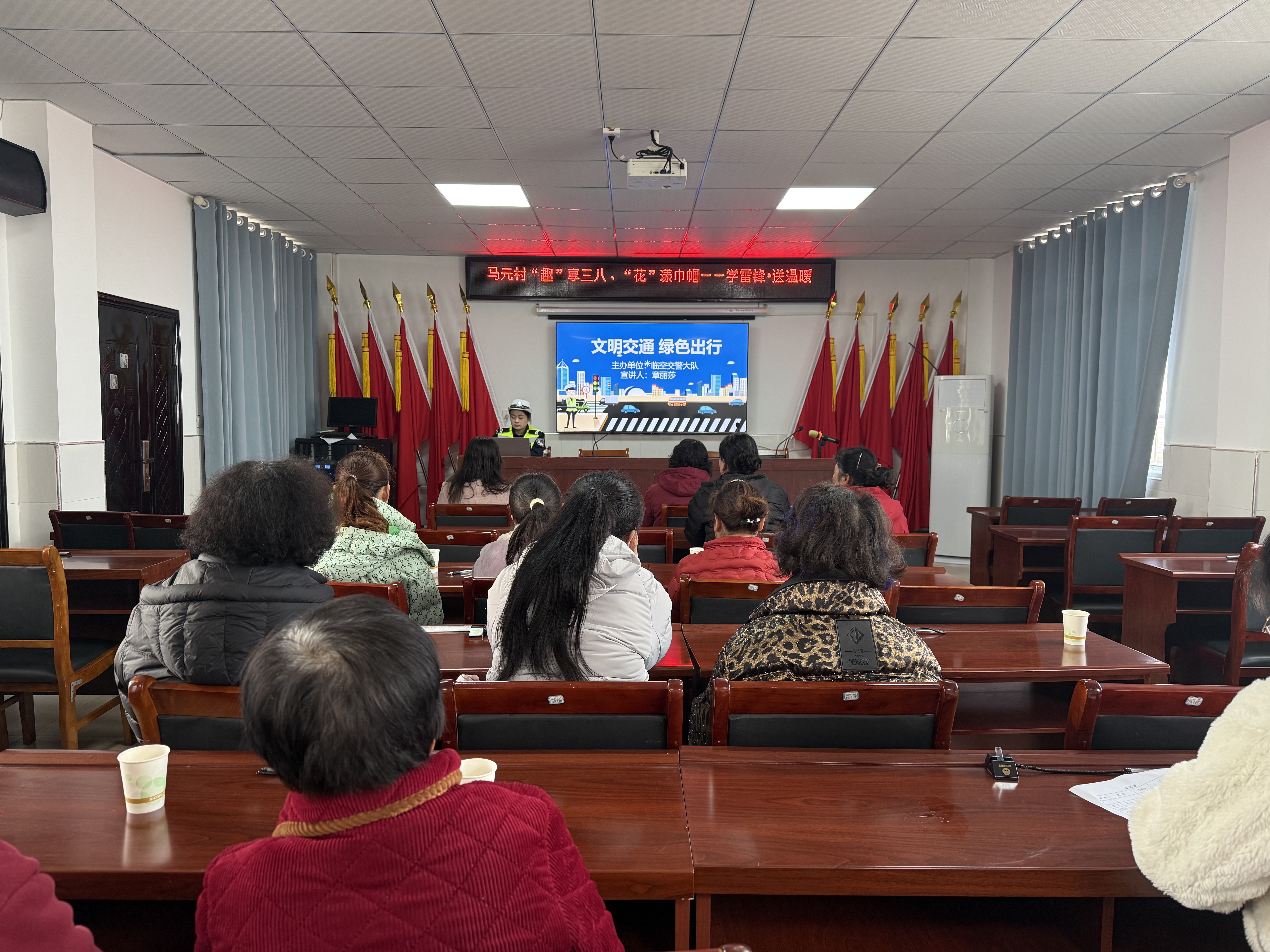 触目惊心的事故画面让在场人员深受震撼,大家盯着屏幕,不时发出阵阵唏嘘。民警结合视频案例,详细讲解了闯红灯、逆向行驶、不按规定车道行驶等违法行为的危害,并提醒大家自觉遵守交通规则,做到安全出行、文明出行。妇女同胞们纷纷表示,今后一定遵章守纪,做文明交通的践行者和传播者。