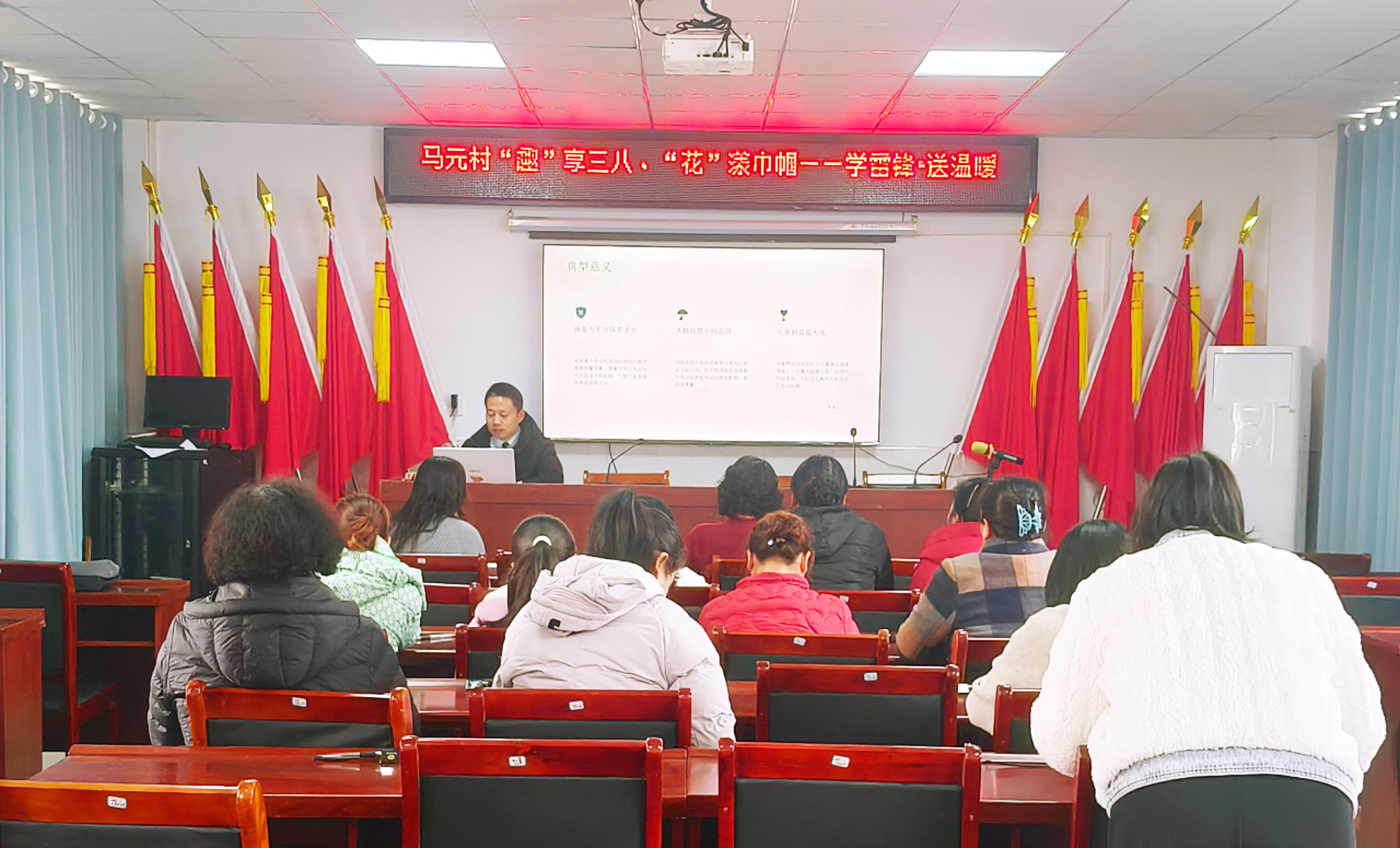 阳春三月,人面桃花相映红;巾帼奉献,雷锋精神在心中。3月4日上午,新庙镇马元村新时代文明实践站内暖意融融、花香四溢,一场以“庆三八·学雷锋”为主题的系列活动在这里温情启幕。全村20余名妇女代表、巾帼志愿者齐聚一堂,通过普法宣讲、安全课堂、插花体验等环节,度过了一个充实而有意义的节日。