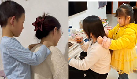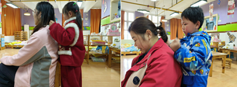 大班知行合一,感恩于心。大班孩子们用捶背、做家务等实际行动,向身边女性传递温暖。教室里,孩子们主动为老师捶捶肩、揉揉背,用小小的手掌传递大大的温暖;