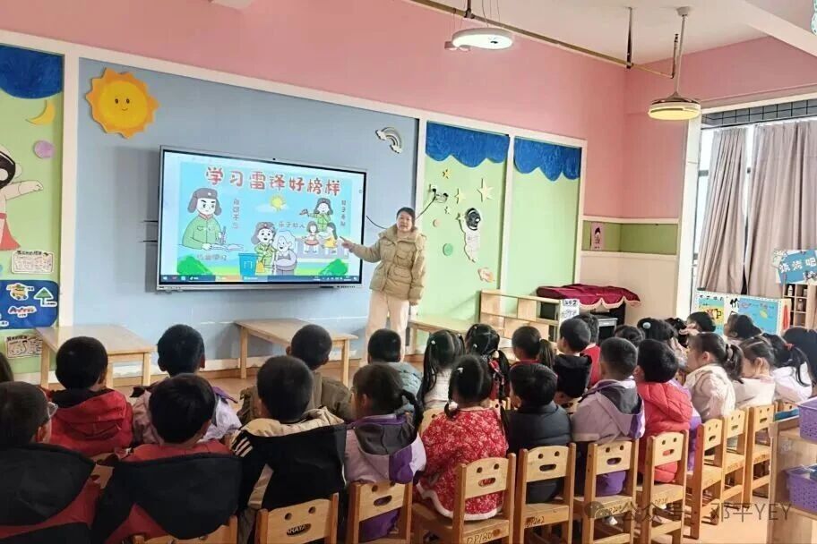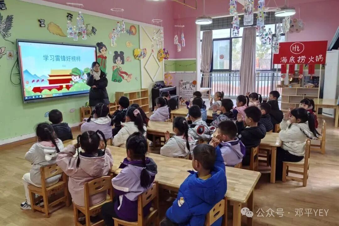 老师们通过生动的图片、感人的动画视频以及朗朗上口的红色歌谣,带领孩子们走进了雷锋叔叔的世界。