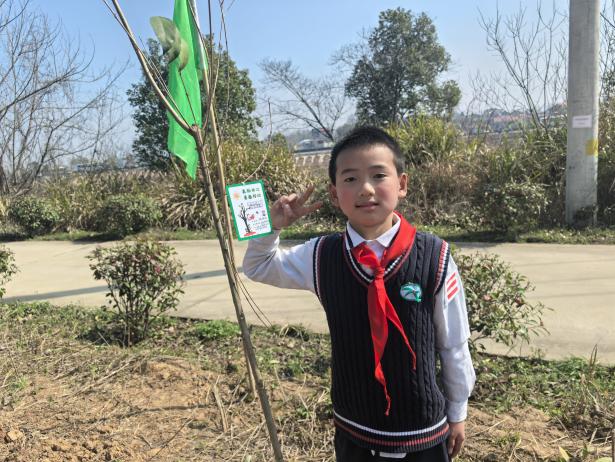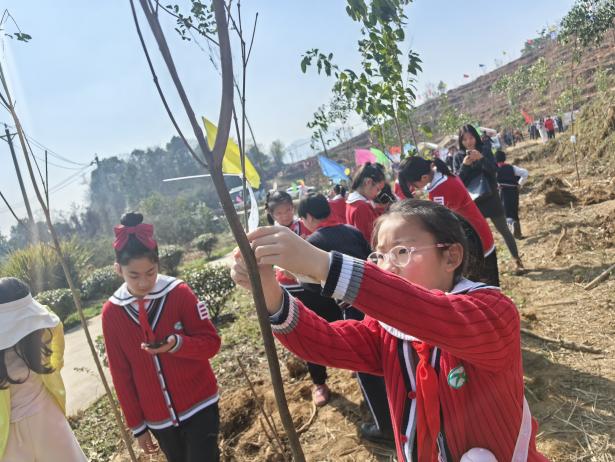 植树结束后,最温馨的环节如约而至。同学们拿出准备好的心愿卡,认真写下自己对自然、对成长、对家园的美好期盼,轻轻系在亲手栽种的树苗上。“愿小树和我一起茁壮成长”“爱护环境,从我做起”……一句句纯真质朴的话语,承载着孩子们对绿色生态的向往,对美好家园的祝福,也让生态文明的种子在心底深深扎根。
