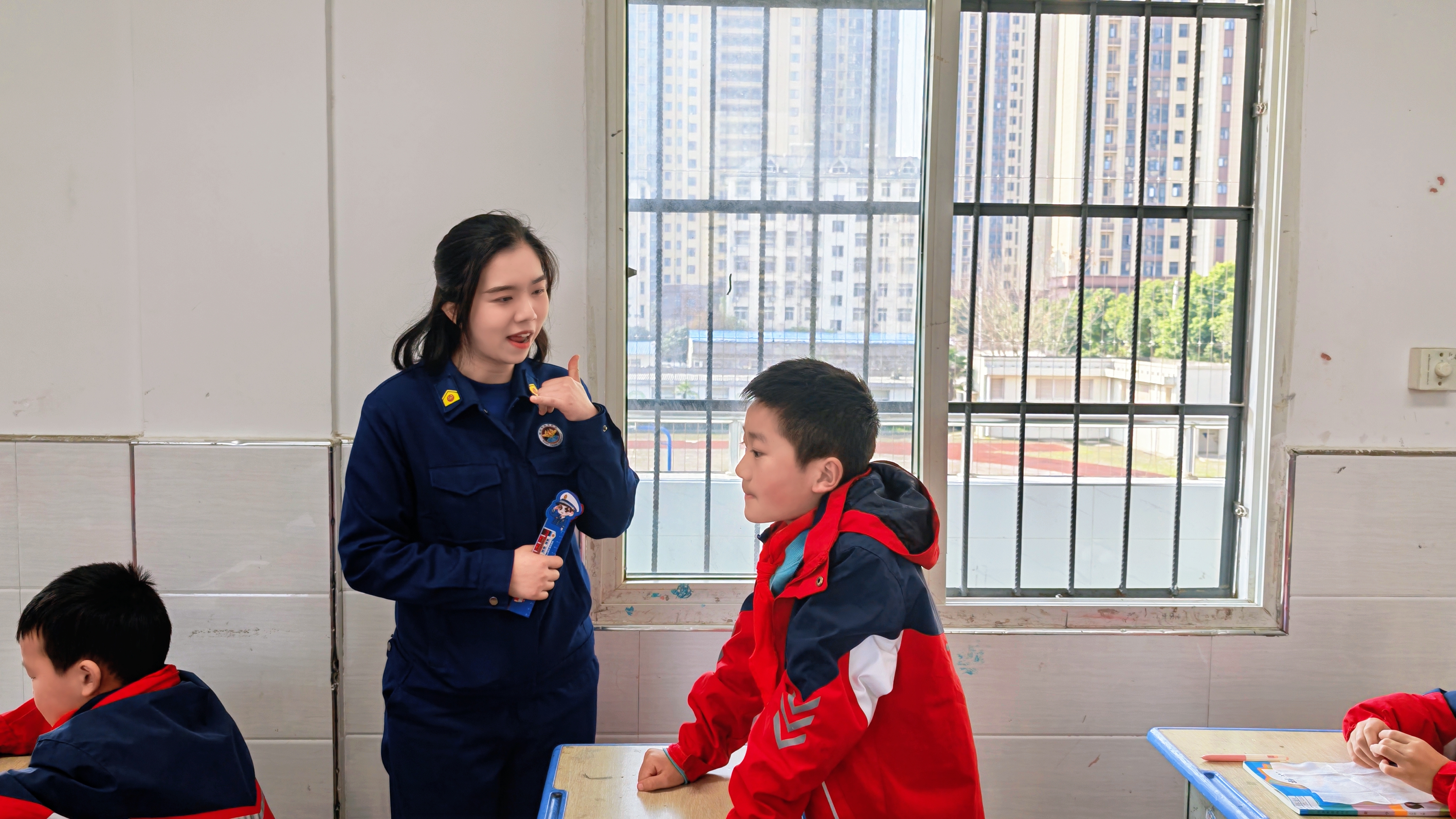 活动在消防知识课堂中拉开序幕。消防救援人员化身“蓝老师”走进教室,结合真实案例与校园生活实际,为学生们系统讲解了火灾防范、正确报警及火场逃生要领,在互动中夯实了学生的安全知识基础。