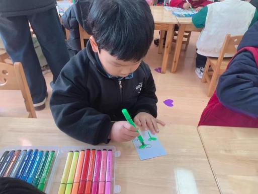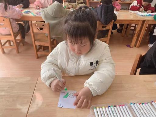 中班的孩子们则拿起画笔,在书签上尽情描绘心中的春天。他们用五彩画笔勾勒嫩绿的枝叶、绽放的花朵,将对自然的喜爱融入笔墨之间。