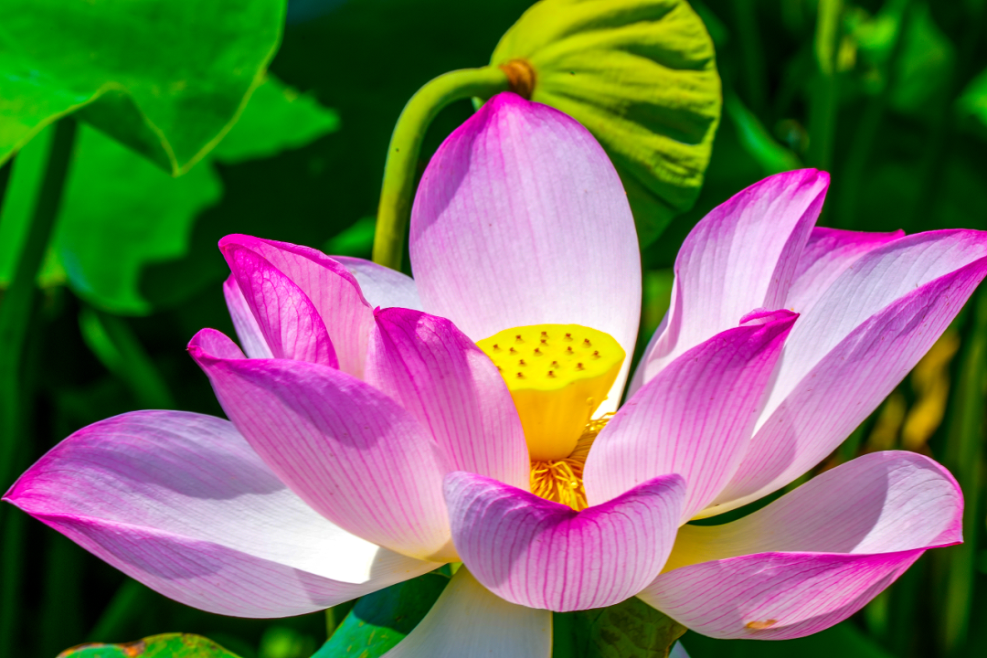 荷叶如巨大的翠玉盘,层层叠叠铺向天际,风起时,水鸟掠过翻涌绿浪,湿润的荷香扑面而来。粉的、白的荷花在万绿丛中亭亭玉立,在骄阳下自顾自地明媚,宛如夏日的精灵,悄悄点燃了视野里的清凉。阔叶之下,最鲜活的滋味正挂在枝头——水果莲蓬。