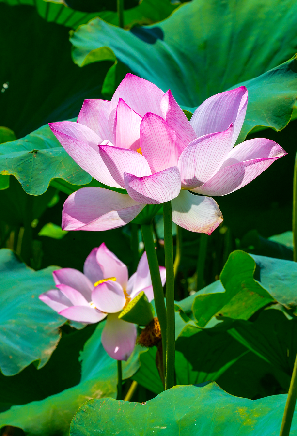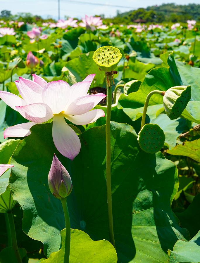 待到太阳初升,荷塘的主角就换成了提着竹篮、戴起草帽、笑容满面的游客们了。