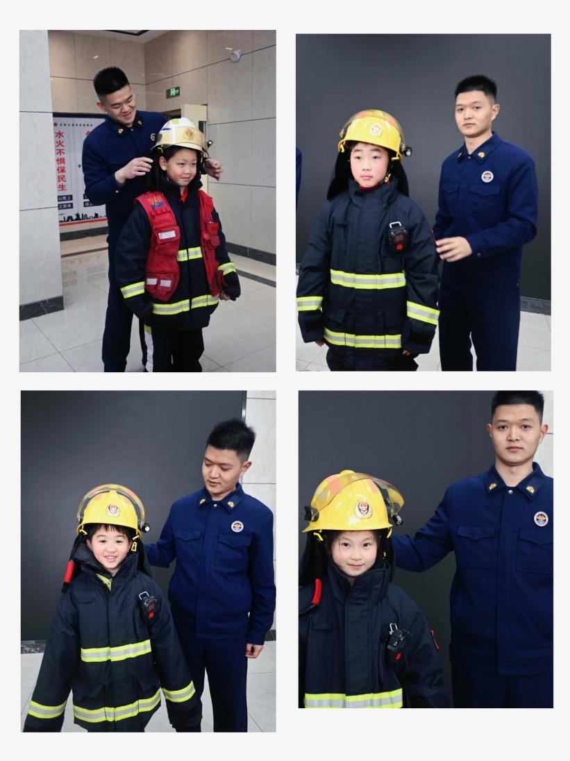 亲身体验环节成为活动的亮点。在消防员的帮助下,孩子们轮流试穿厚重的灭火战斗服、戴上消防头盔,摇身一变成为“小小消防员”。“这件衣服好重啊,压得我肩膀都酸了!”一名学生试穿后由衷感慨。看似帅气的消防服,背后是消防员执勤救援时的坚守与付出,孩子们在亲身感受中,深刻体会到消防员灭火救援的艰辛,读懂了“责任与担当”的真正含义。