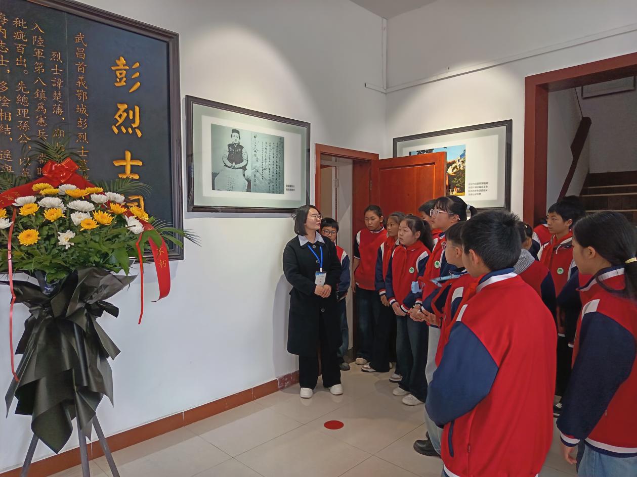 活动现场,师生们整齐列队,肃立默哀、敬献花篮,向革命先烈致以最崇高的敬意。随后,在讲解员的引导下,师生们参观了彭楚藩烈士馆,通过历史照片、文物史料,深入学习彭楚藩烈士的革命事迹,感悟辛亥革命先烈的家国情怀与牺牲精神。同学们在彭烈士祠前鞠躬献花,用庄重的仪式缅怀英烈、寄托哀思。