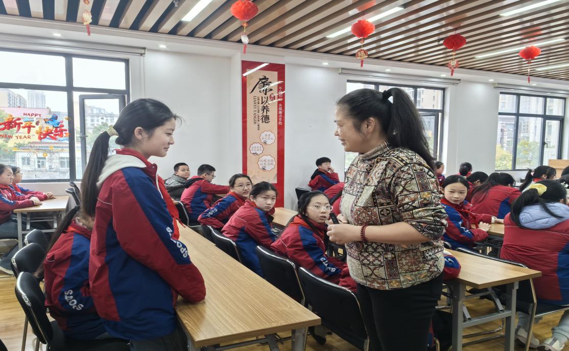 郭老师建议,当意见不合时,不妨先深呼吸冷静下来,尝试多用“我感觉……”的共情句式替代“你不对……”的指责性表达。为了检验学习成果,现场还设置了情景小剧场互动环节。孩子们积极参与,学以致用,在角色扮演中熟练运用刚学到的沟通技巧化解“矛盾”,将课堂推向高潮。即便讲座结束,孩子们仍意犹未尽,纷纷围拢在郭老师身边,倾诉学习与交友中的烦恼,郭老师也一一耐心解答,给予了孩子们暖心的关怀。