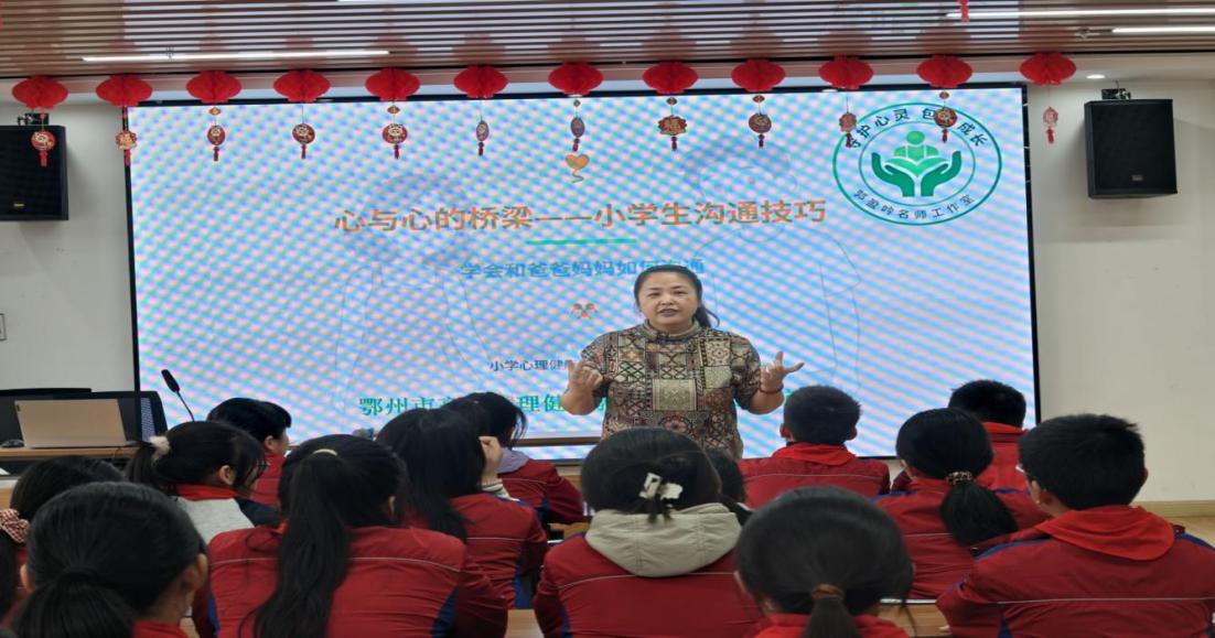 为进一步加强心理健康教育,助力学生平稳度过成长关键期,构建和谐亲子关系,3月26日,鄂城区凤凰街道莲花小学携手莲花山社区共同举办了以“心与心的桥梁——小学生沟通技巧”为主题的心理健康公益讲座。本次活动特邀鄂州市心理健康名师郭盈吟老师主讲,莲花小学六(2)班全体同学全程参与。