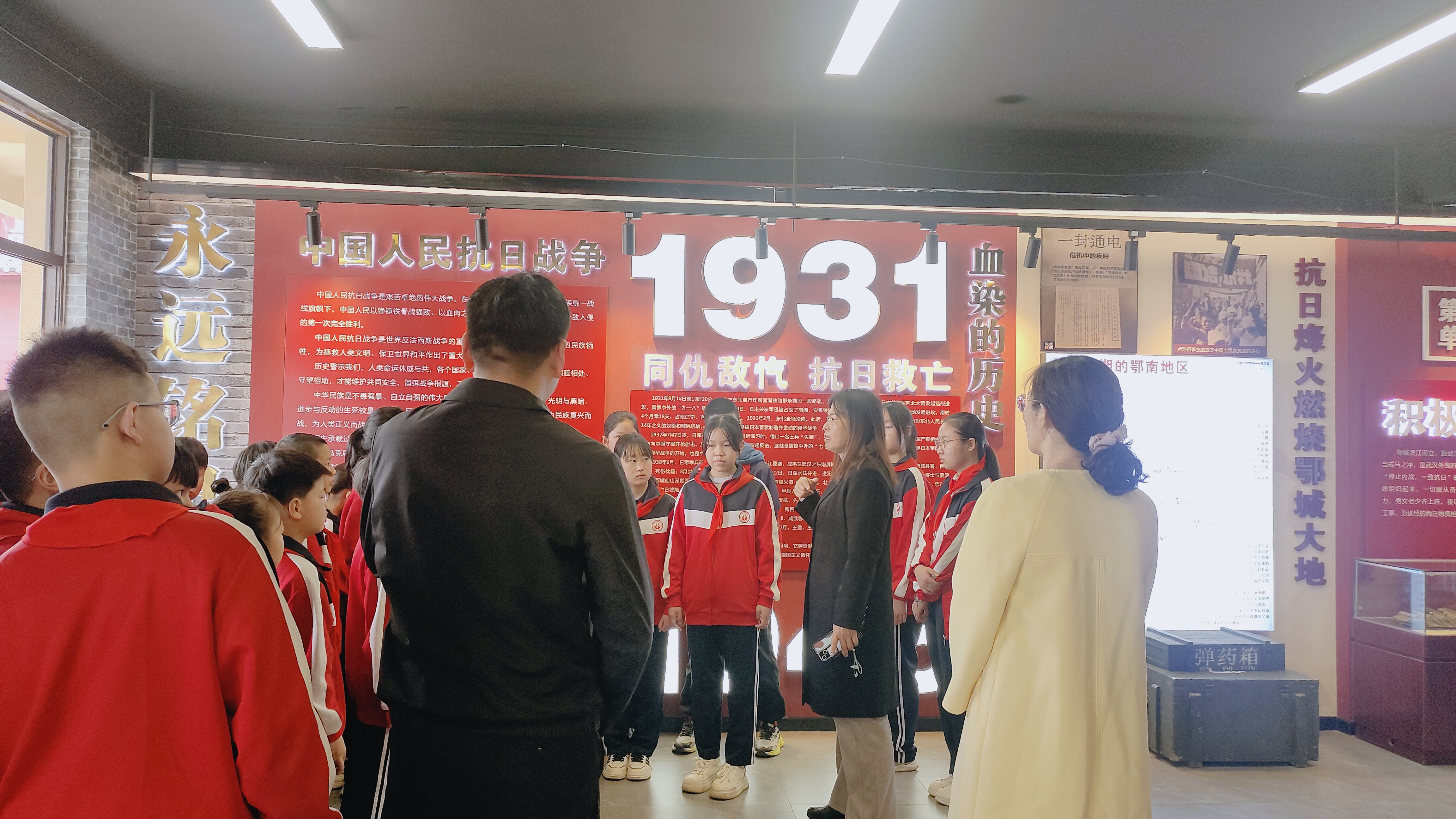 师生们还参观了鄂城抗战纪念馆。一张张泛黄的历史照片,一件件珍贵的抗战文物,生动还原了烽火岁月里鄂城儿女浴血奋战的壮阔场景。在讲解员的引导下,师生们驻足凝视,认真聆听先烈们的战斗故事。红色情景剧——《弹片勋章》让师生们了解到高性宽英雄的感人事迹。每一段历史都让大家深受震撼,不少教师和少先队员眼含热泪,深刻感悟今日和平生活的来之不易。