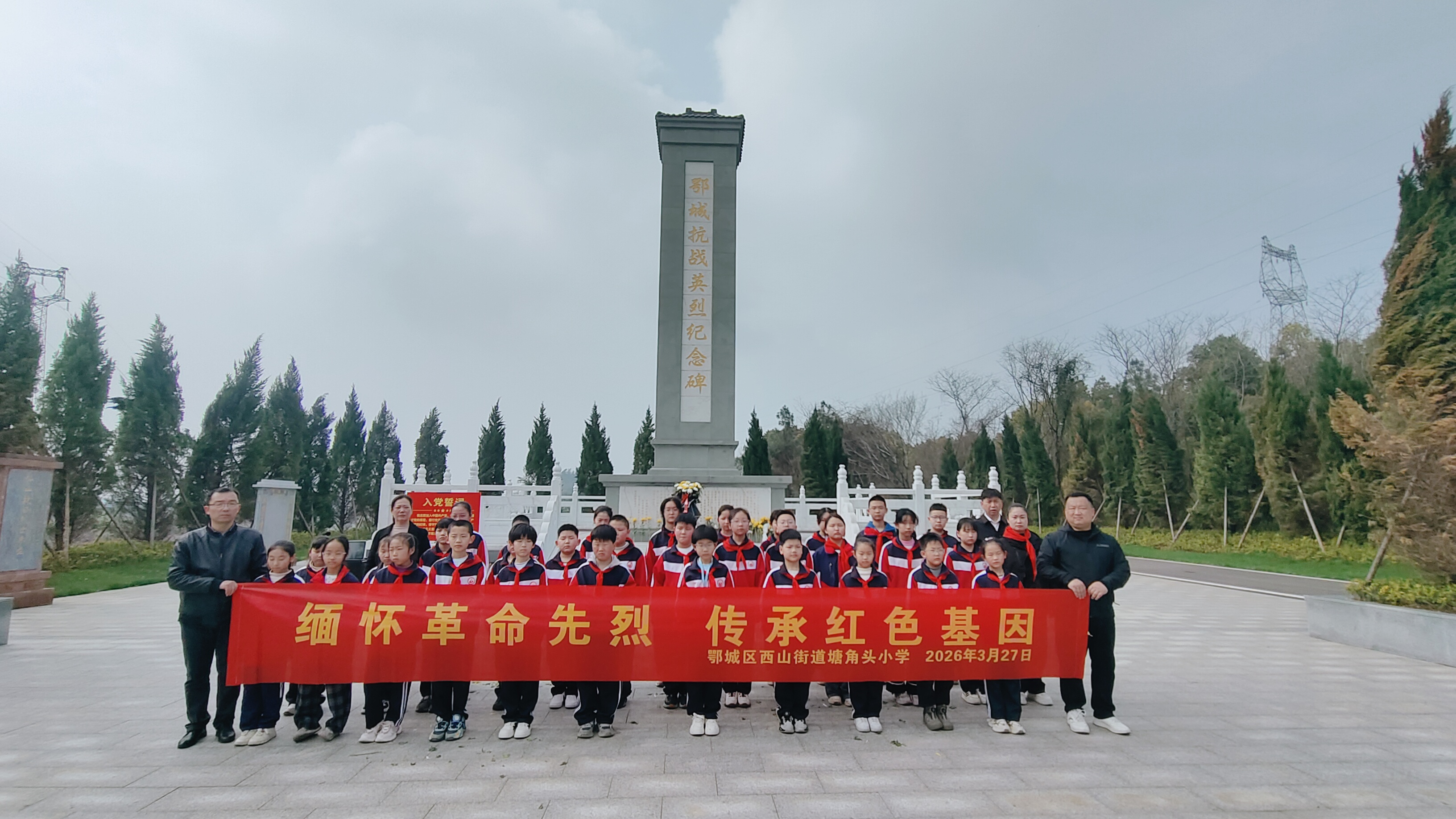 为深切缅怀革命先烈的丰功伟绩,传承红色精神血脉,厚植师生爱国主义情怀,3月27日,鄂城区西山街道塘角头小学组织32名优秀少先队员前往鄂城抗战英烈纪念碑、鄂城抗战纪念馆,开展“缅怀革命先烈 传承红色基因”主题教育活动,以庄重的仪式追忆英烈、以赤诚的初心弘扬爱国精神。