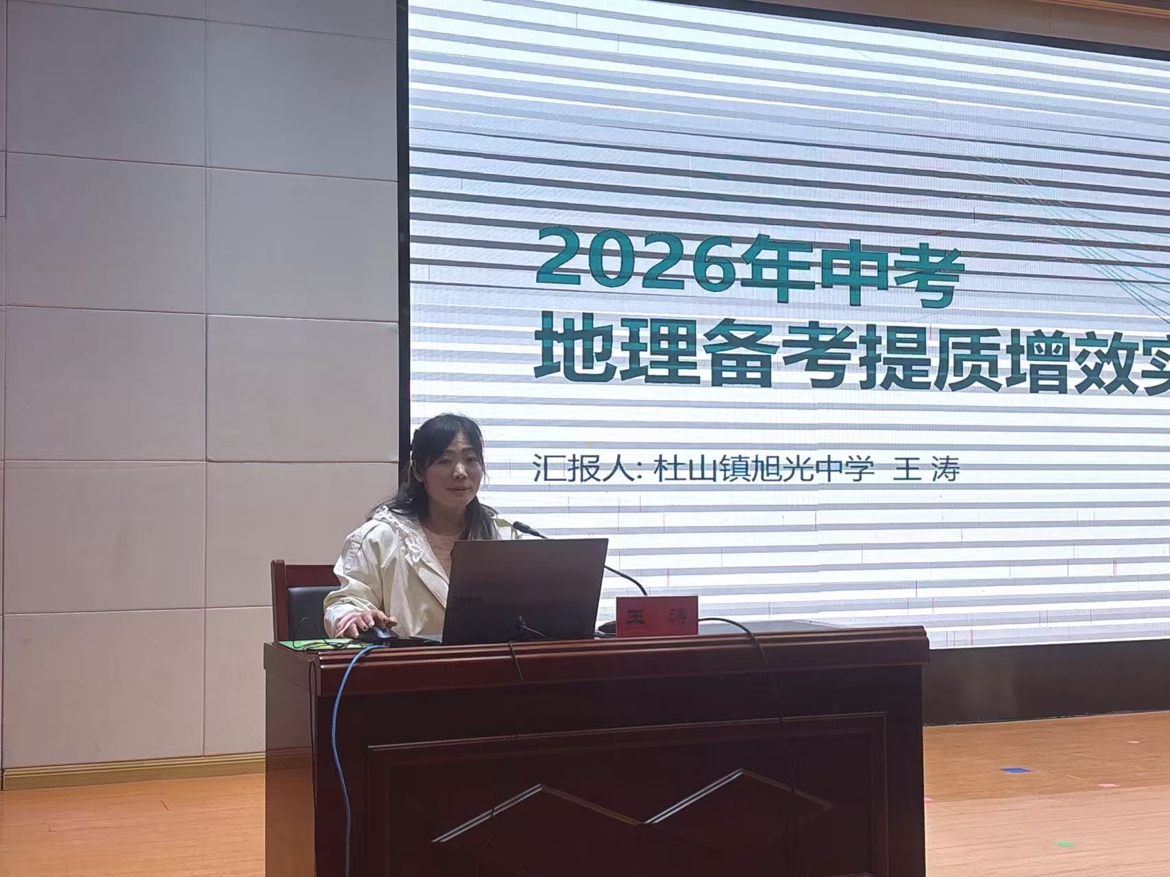 旭光中学王涛老师结合自身教学实践,带来“素养领航 多措并举”备考策略分享。他从命题趋势、备考问题、提质策略、执行保障四方面入手,提出构建结构化知识体系、推行大单元教学、强化读图能力等七大举措,同时制定三轮复习时间轴,明确课堂提质“四个一”要求,针对性解决备考中重背诵、轻能力的低效问题,为一线教学提供实用参考。