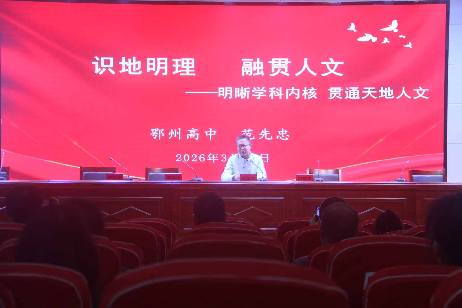 专题分享环节,鄂高名师范先忠围绕地理教学本质展开讲解。他指出,当前地理考试已彻底摒弃死记硬背模式,回归学科本源,命题更具场景化、真实化特征。教学需紧扣人地协调观核心,立足地理学科整体性与差异性特点,聚焦核心素养培育,引导学生运用地理思维解决实际问题,真正做到学习有用的地理。