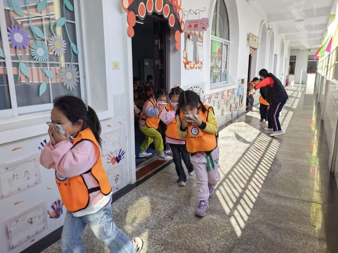 疏散过程中,幼儿园老师全程紧随队伍两侧,一边维护疏散秩序,一边密切关注每一位幼儿的状态,及时安抚胆小、紧张的孩子,细致排查是否有幼儿摔倒、受伤,全力保障疏散通道畅通无阻。老师们分工明确、配合默契,全程守护在幼儿身边,用温暖的话语和有力的搀扶,为孩子们的安全逃生保驾护航,充分展现了教职工高度的责任意识和应急处置能力。