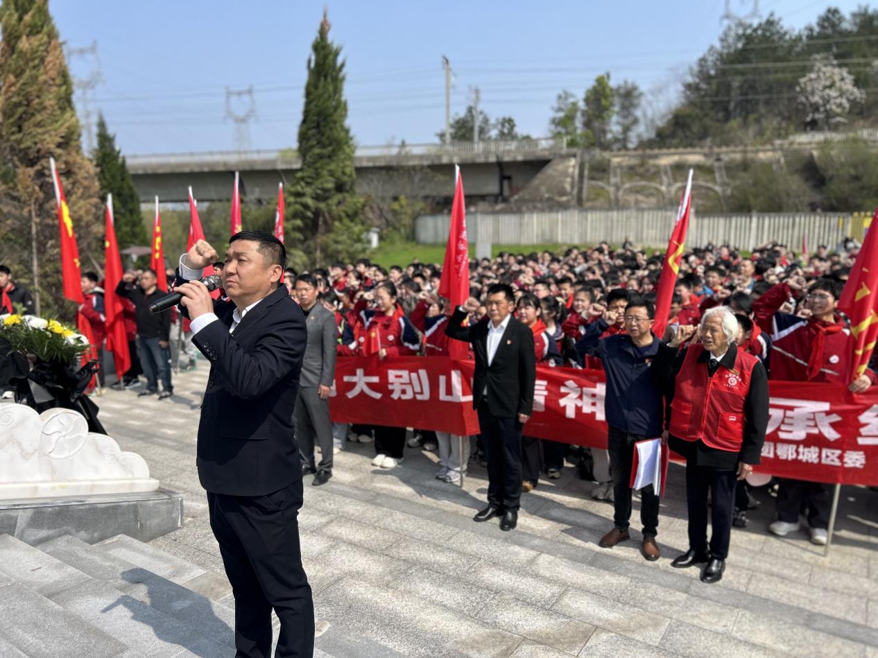 仪式上,陈敬松书记发表讲话,带领大家重温鄂城抗战的峥嵘岁月,勉励全体师生铭记历史、传承英烈精神,坚定不移听党话、跟党走,努力成长为担当民族复兴大任的时代新人。