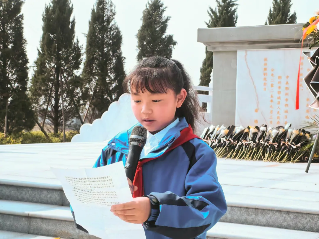学生代表张欣然言辞恳切、真挚发声。她说道,身处英烈长眠之地,更懂今日幸福生活来之不易,新时代少年将传承先烈精神,树立远大志向,勤学笃行、锤炼品格,以青春之我扛起时代责任,以实际行动告慰先烈忠魂。