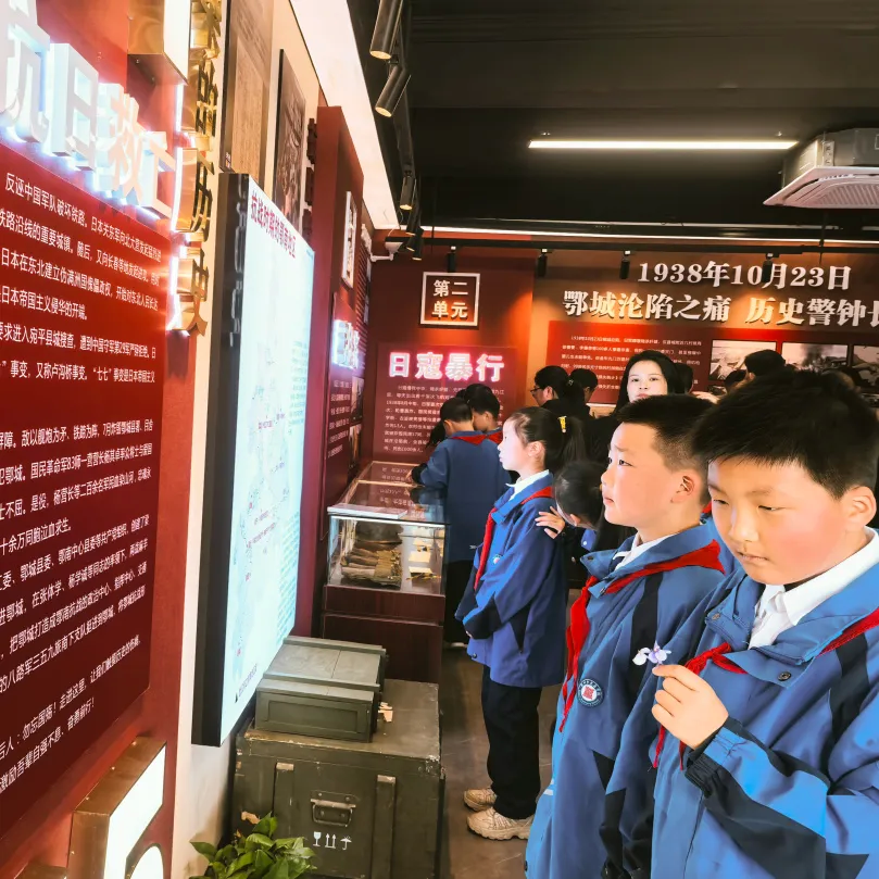祭扫仪式结束后,师生们一同走进鄂城抗战纪念馆。