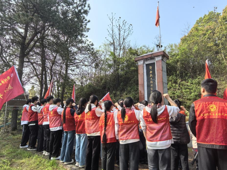 在鄂南抗日桥头堡纪念碑前,全体师生代表整齐列队,庄严肃立,向革命先烈敬献花篮与鲜花,朵朵菊花寄托着对英烈的无限哀思与崇高敬意。学生代表李嘉琪在发言中表达了新时代青少年铭记历史、不负韶华、传承红色基因、勇担时代使命的坚定决心。全体团员面向团旗,高举右拳,重温入团誓词,用铿锵有力的誓言庄严承诺,坚定理想信念,以先烈为榜样,传承红色血脉。最后,师生代表依次缓步绕行纪念碑,瞻仰英烈丰碑,向革命先烈致以最崇高的敬意。(特约记者:张波 通讯员:秦莹)