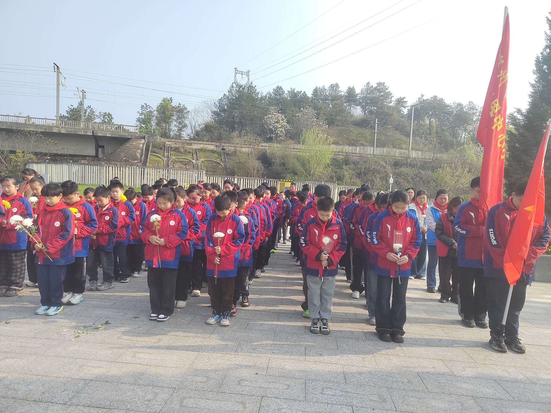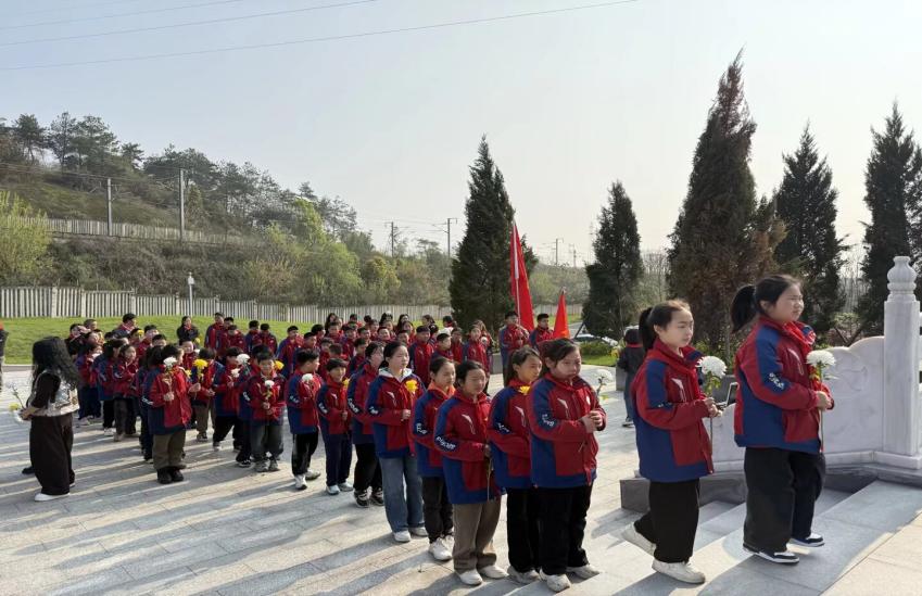 学校少工委主任发表讲话,号召全体师生铭记历史、感恩先烈,将爱国情怀融入日常学习与生活;少先队员代表庄严宣誓,立志传承红色精神,努力成长为新时代好少年。随后,全体师生依次敬献鲜花,表达对革命先烈的无限敬仰与深切缅怀。