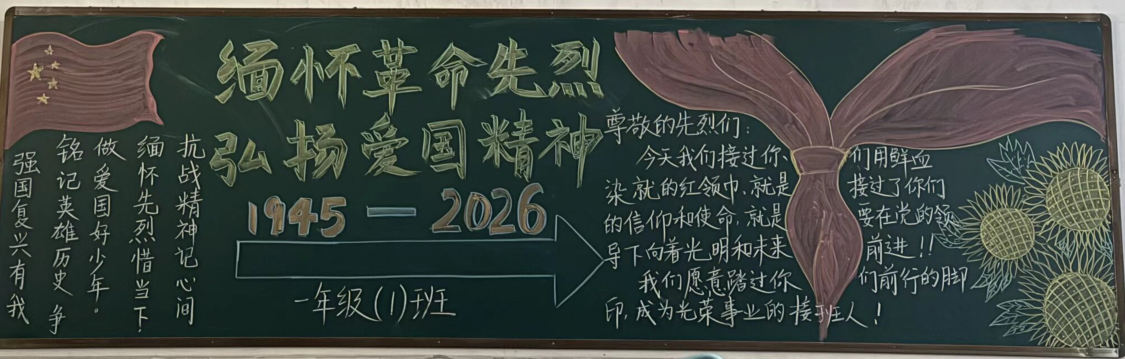 各班教室焕然一新,“缅怀革命先烈,传承红色基因”主题黑板报整齐呈现。图文并茂、庄重肃穆,营造浓厚红色教育氛围,让教室成为传承英烈精神的生动阵地。