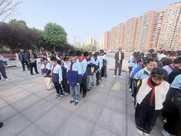 在大队辅导员汤老师的带领下,全体学生庄严宣誓:“我要继承革命先烈遗志,发扬革命传统,谨记党的教诲,树立远大理想!人民为先,祖国至上,诚实勇敢,自律自强;奋发学习,誓做栋梁,振兴中华,再造辉煌!”铿锵誓言在陵园回荡,彰显新时代少年的责任与担当。