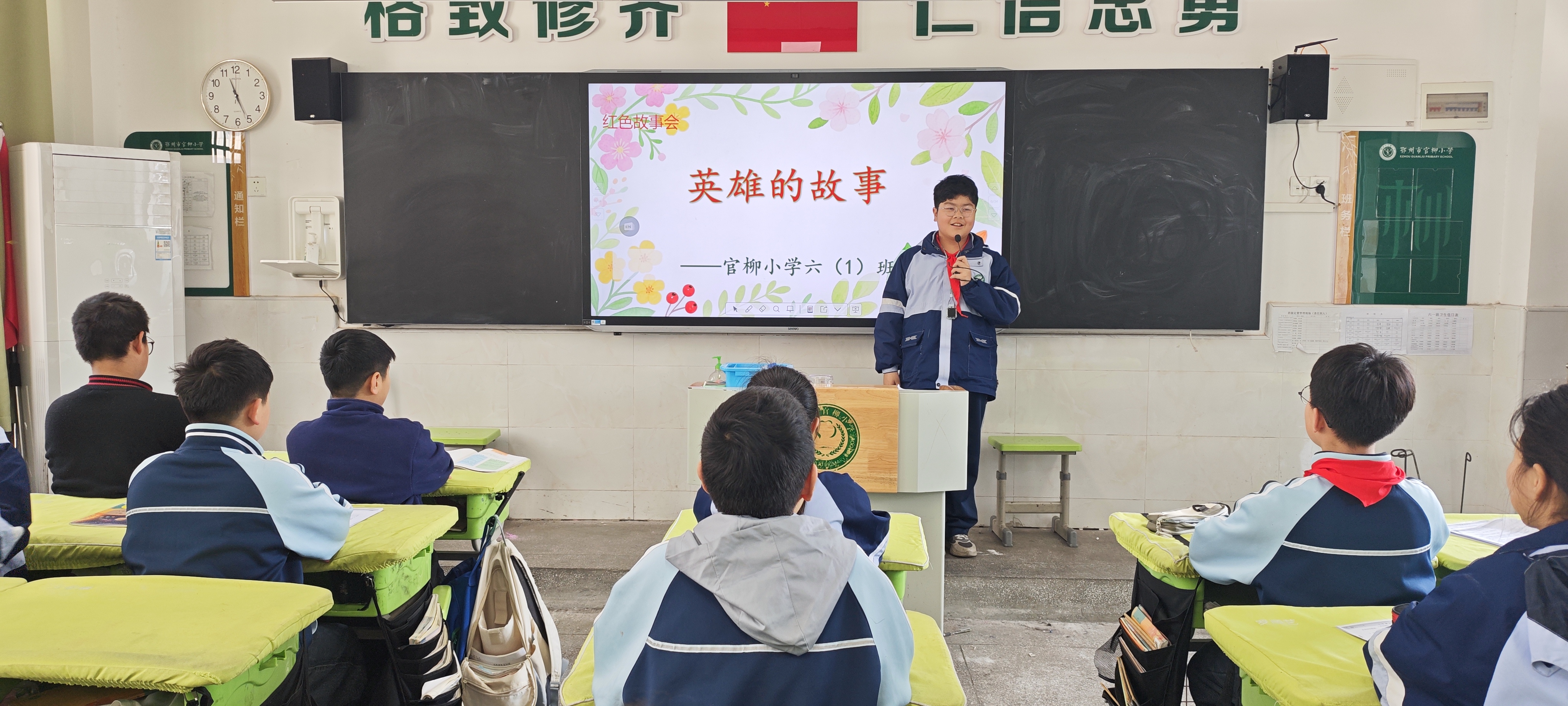 为让红色精神浸润童心,各班级同步开展了“红色故事会”主题分享活动。同学们踊跃上台,声情并茂地讲述了彭楚藩、高性宽等鄂州本地英烈的革命故事,以及一个个感人至深的红色经典事迹。从烽火岁月里的英雄壮举,到和平年代的使命担当,同学们在讲述与倾听中,重温了波澜壮阔的革命历史,深刻理解了英烈精神的时代内涵。让红色基因在潜移默化中融入血脉,让革命精神在校园里代代相传。