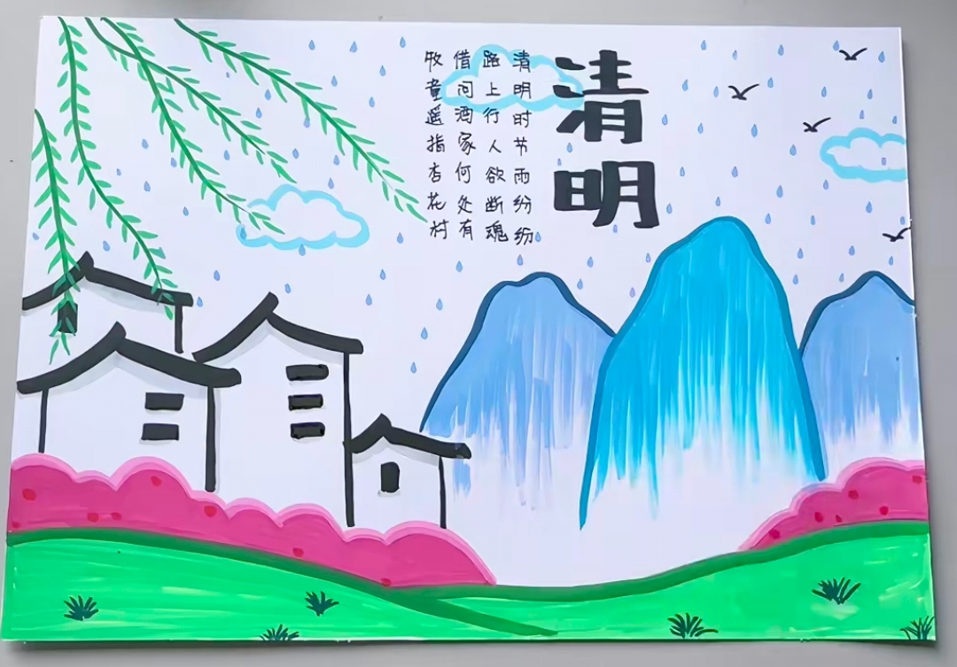 一笔一画寄哀思,一言一行承壮志。该校还组织开展了手抄报、清明寄语小卡片创作展示活动。同学们用手中的画笔,精心绘制出一幅幅主题鲜明、内容丰富的手抄报,用稚嫩的笔触勾勒出英烈的光辉形象,书写对革命先烈的崇敬与追思;一张张饱含深情的清明寄语小卡片,承载着同学们对英烈的无限缅怀与美好祝愿,字里行间满是少年的赤诚与担当。这些作品在校园内集中展示,成为一道生动的红色教育风景线,让每一位师生都能在驻足观赏中,感悟英烈精神,汲取奋进力量。