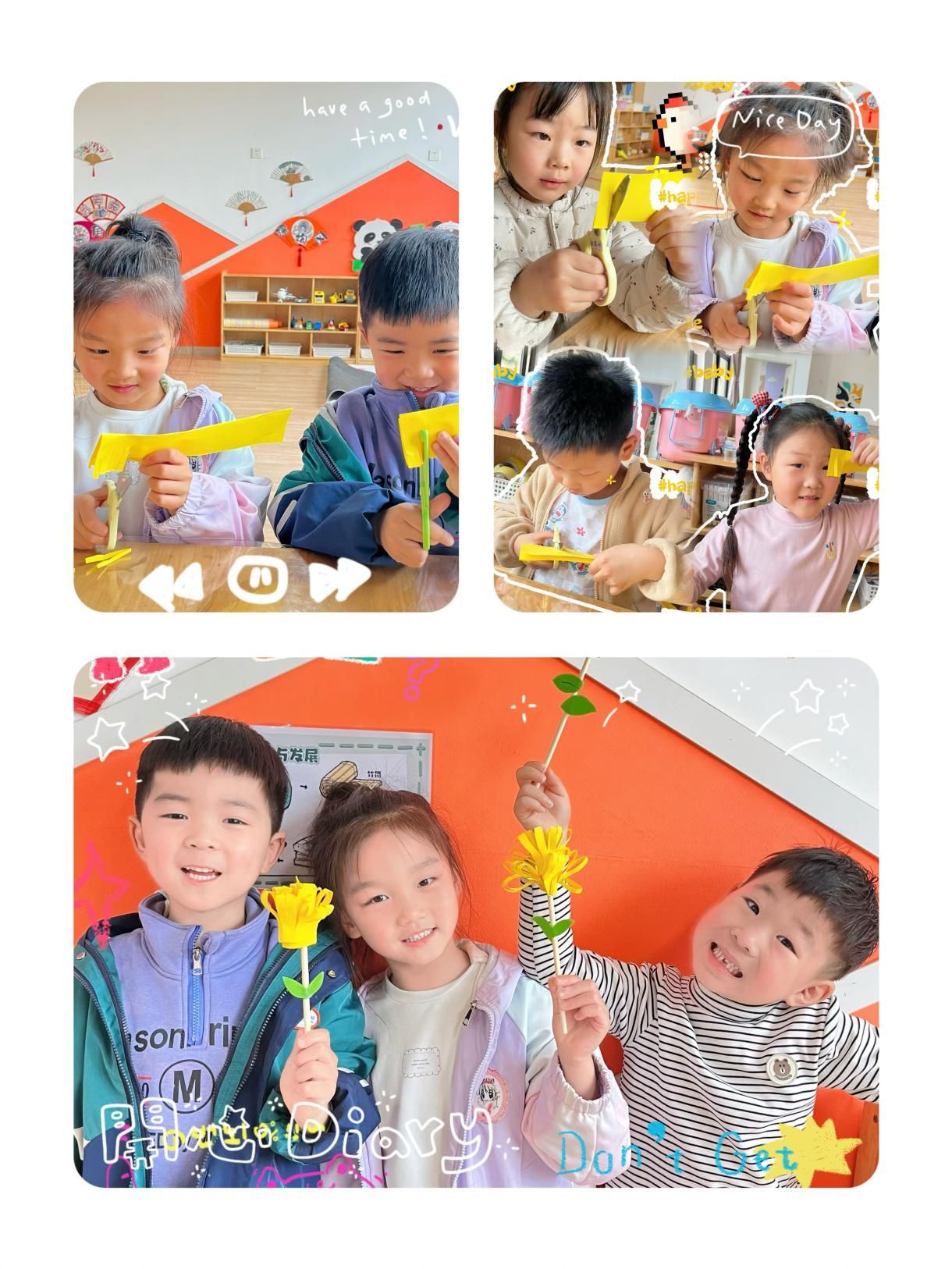 大班的孩子们有的化身小小手艺人,专注地裁剪、粘贴,亲手制作一朵朵菊花。稚嫩的小手虽不熟练,却饱含真诚,每一片花瓣都承载着对先辈的缅怀与敬意。孩子们用童真的方式,传递着最纯粹的敬意。