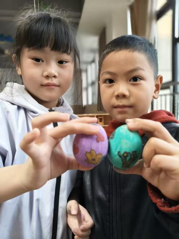 还有的孩子发挥想象力,拿起画笔在彩蛋上勾勒春日色彩、描绘心中美好。一笔一画皆是创意,一涂一抹满是欢喜。色彩斑斓的彩蛋不仅承载着孩子们的美好心愿,更藏着他们对传统节日的喜爱与向往。