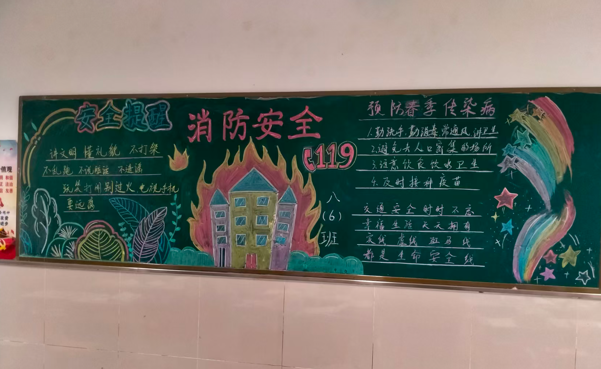 举办一期安全教育黑板报。围绕“防溺水、消防安全、交通安全、心理健康安全、食品卫生安全、应对自然灾害”等主题,各班精心组织策划,通过黑板报和手抄报图文并茂地展示安全知识。