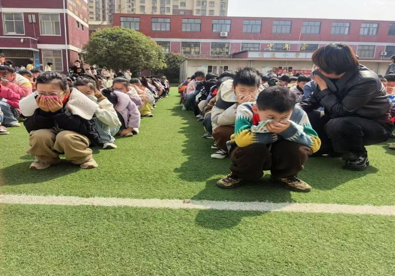 为提升活动实效性,学校还组织开展了多项实操体验活动。联合当地交警部门开展交通安全专题讲座,通过车辆盲区体验、头盔佩戴演示等互动环节,深化学生对交通规则的理解;组织消防应急疏散演练,随着警报响起,各班教师快速组织学生弯腰捂鼻、有序撤离,整个过程紧张有序,有效提升了师生应急避险和自救互救能力。