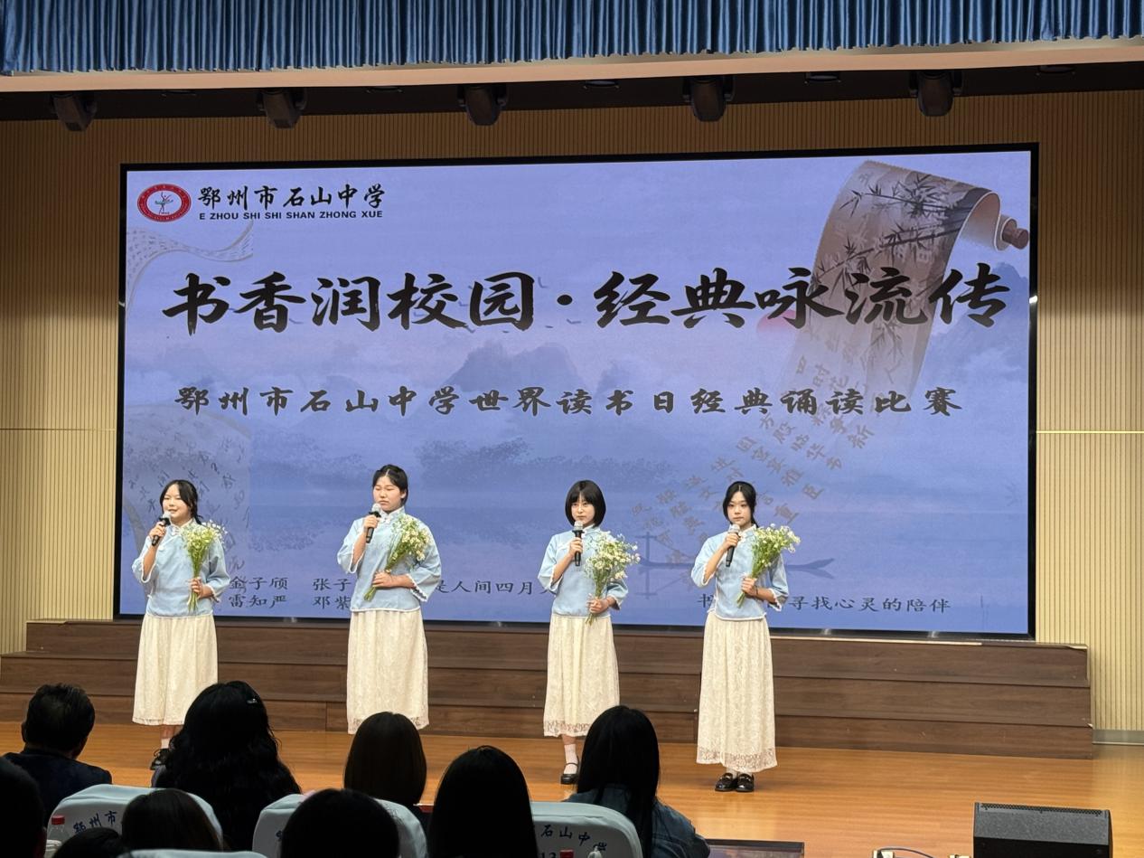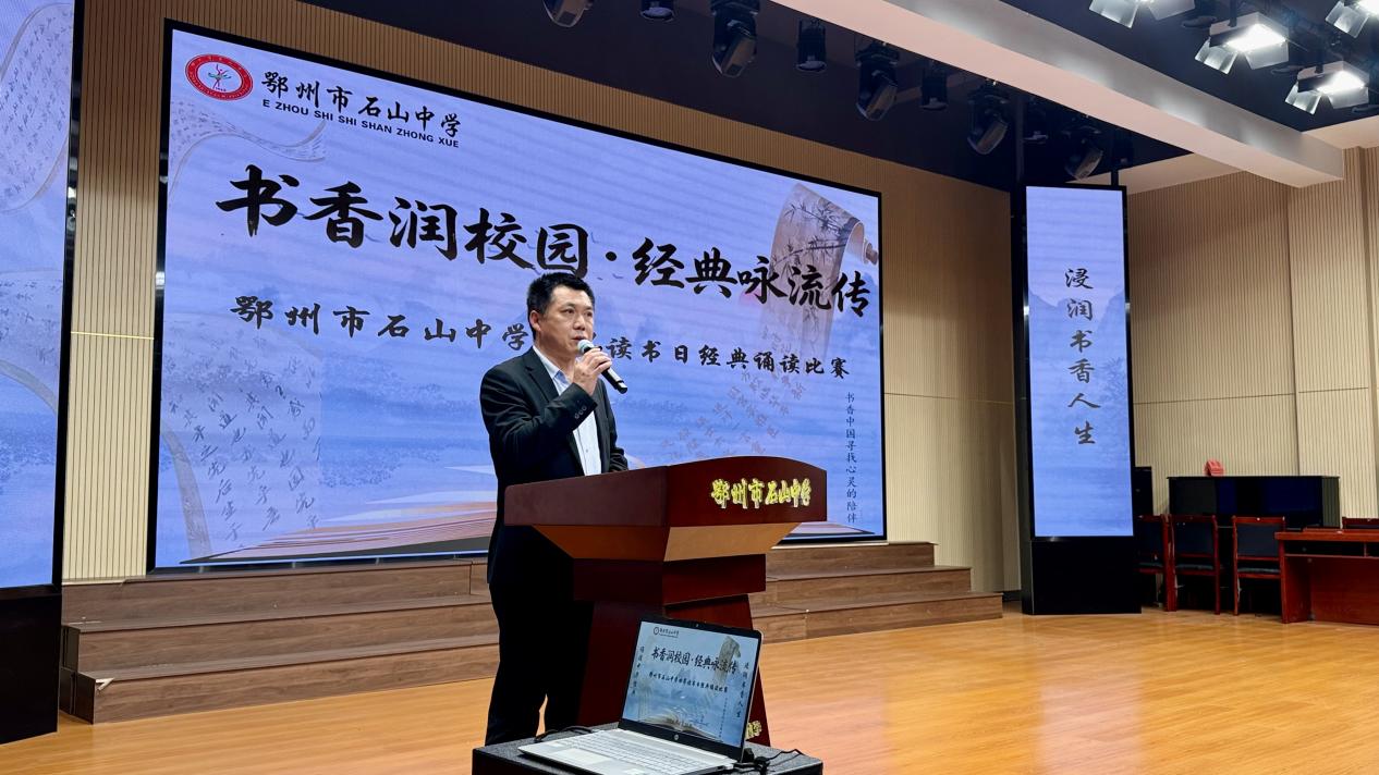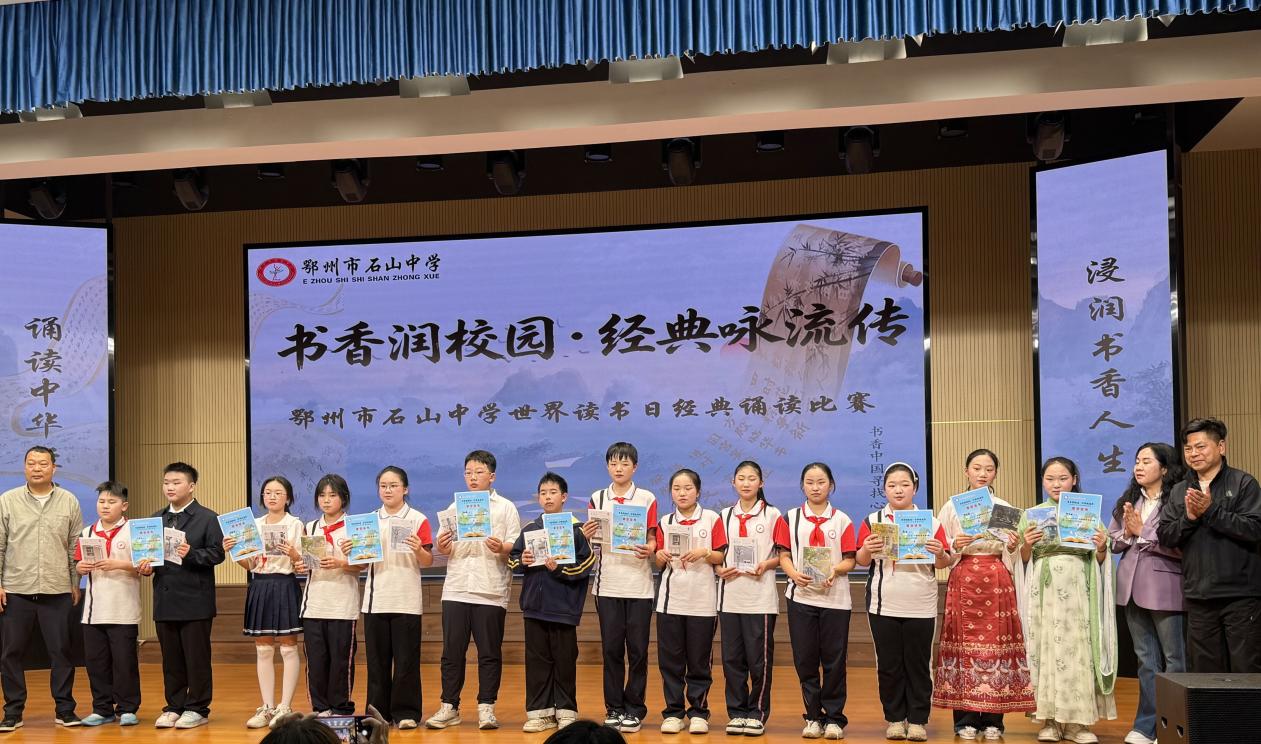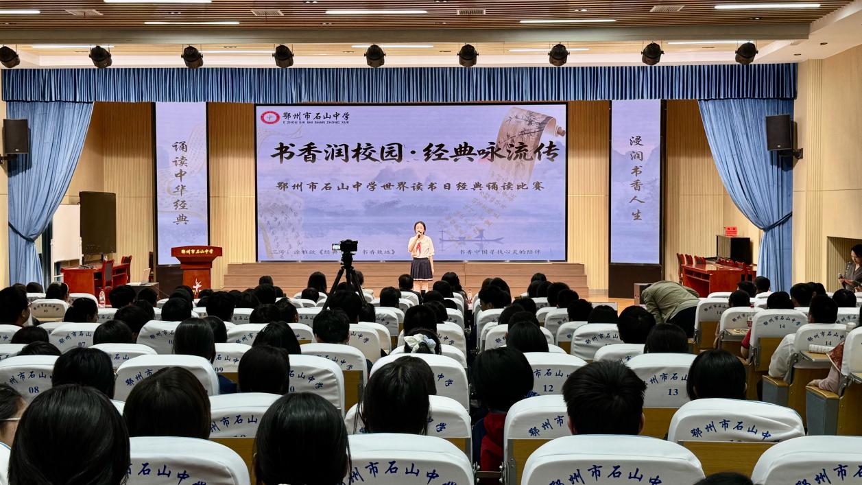 书香溢满校园,经典浸润心灵。为迎接4·23世界读书日,深入推进书香校园建设,4月21日,市石山中学“书香润校园·经典咏流传”世界读书日经典诵读比赛决赛在学校报告厅隆重举行。本次比赛由学校团委联合教务处、体卫艺处、电教处共同主办,七八年级全体参赛选手及师生代表齐聚一堂,共赴一场中华经典文化的视听盛宴。